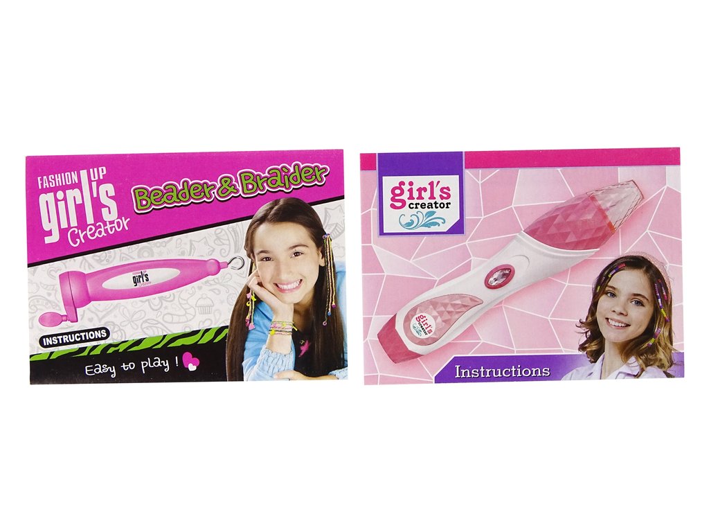 Setul contine multe margele in nuante de roz, galben, violet, verde, albastru si portocaliu, deschizand posibilitati creative nelimitate. Cinci fire de bumbac de opt metri în verde, albastru, alb, roz și galben vă permit să creați diferite stiluri. Vine cu un pieptene albastru pentru confort.