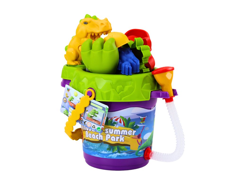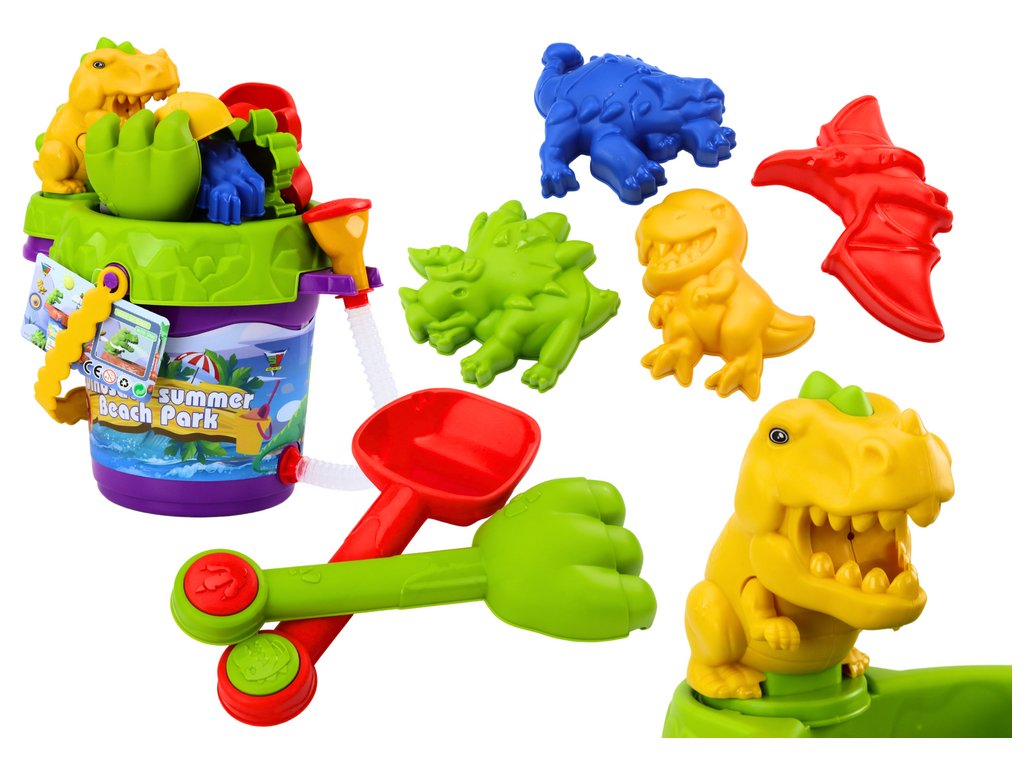Set pentru nisip, o găleată cu duș, un ceainic și matrițe set de dinozauri
