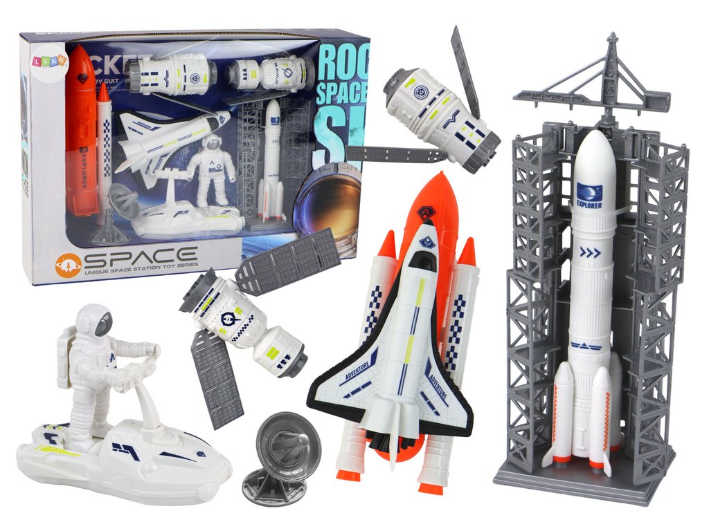 Elementul principal al setului este o rachetă mare impresionantă, gata să se lanseze în regiunile necunoscute ale spațiului. Conceput cu atentie la detalii, in culori vii care atrag atentia copiilor. O rachetă mai mică cu o stație de lansare: