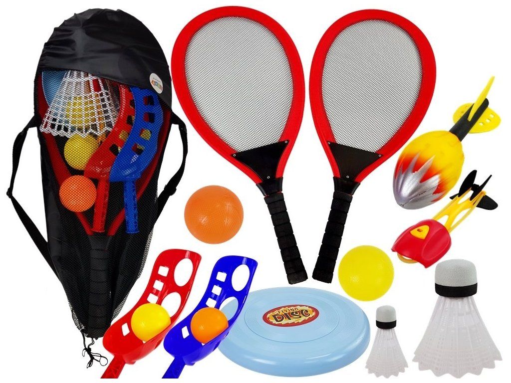 Setul de jocuri sportive va permite copiilor să se bucure de multă distracție în aer liber și în interior. Setul include un frisbee, un set de badminton - mingi și bâte de badminton și un joc în care un jucător aruncă mingea, iar celălalt încearcă să o prindă într-un catcher.