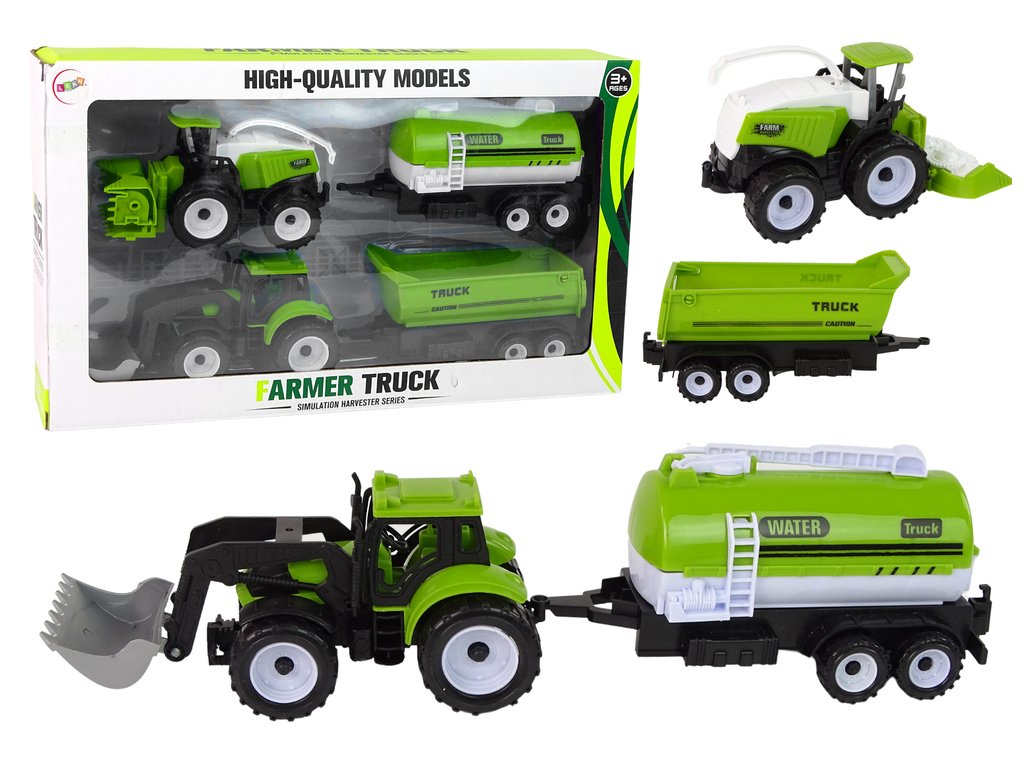 Setul este format din două tractoare de culoare verde și două autocisterne și semiremorci, fiecare cu o funcție diferită. Primul dintre ele este un cisternă de apă, al doilea transportă cereale. Setul dezvoltă cunoștințele copiilor despre munca în mediul rural și operarea mașinilor. Tractorul din față are plug și greblă. Mașinile au părți mobile care arată cum funcționează în viața reală.