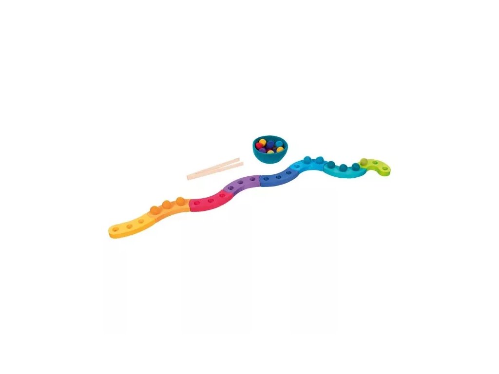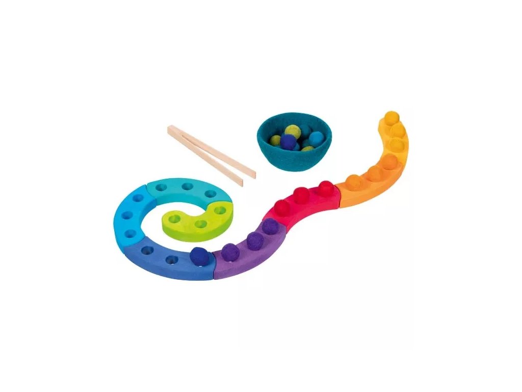 Spirala colorată din opt părți este asamblată într-o formă în ale cărei adâncituri sunt plasate bile de lână din pâslă. Pentru manipulare se folosesc clești de lemn, care susțin precizia și mișcările fine ale mâinii. Jocul poate fi jucat în diferite moduri, de exemplu, sortarea culorilor și numărarea.