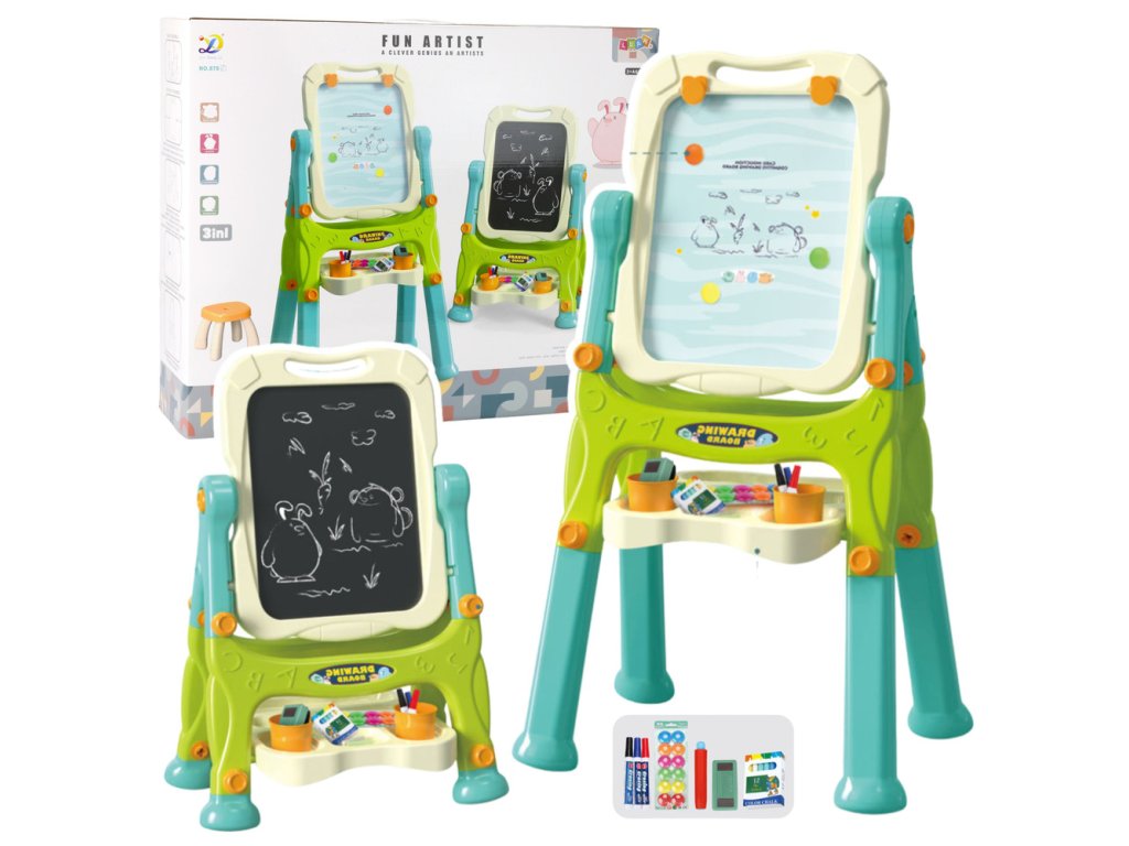 Tablă educativă față-verso 3 în 1 pentru copii cu accesorii verde