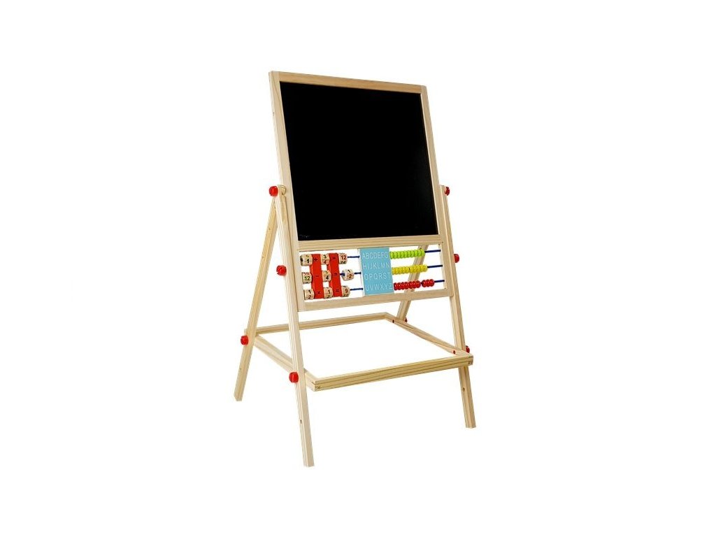 Tabla din lemn pentru copii este cu două fețe, ceea ce înseamnă că pe o parte tabla are o suprafață magnetică pe care se poate scrie cu un marker. Cealaltă parte este destinată scrierii cu cretă. Placa este realizata din elemente din lemn. Tabla este îmbogățită cu un contor , un ceas și magneți numerici destinati operațiilor matematice unice.
