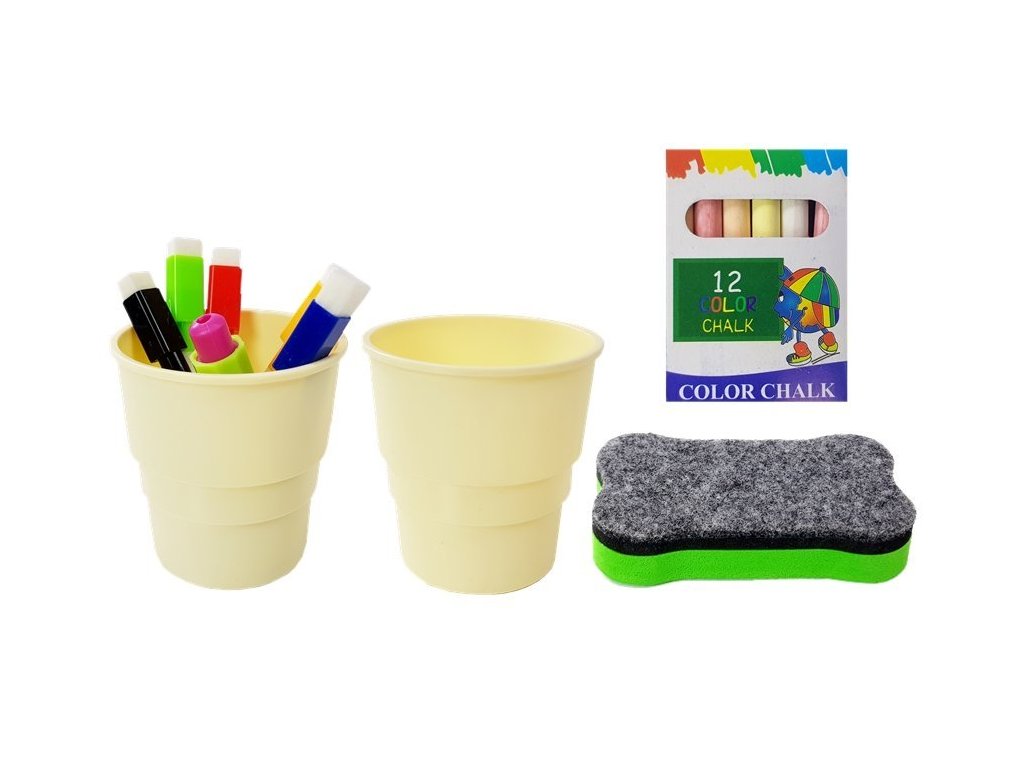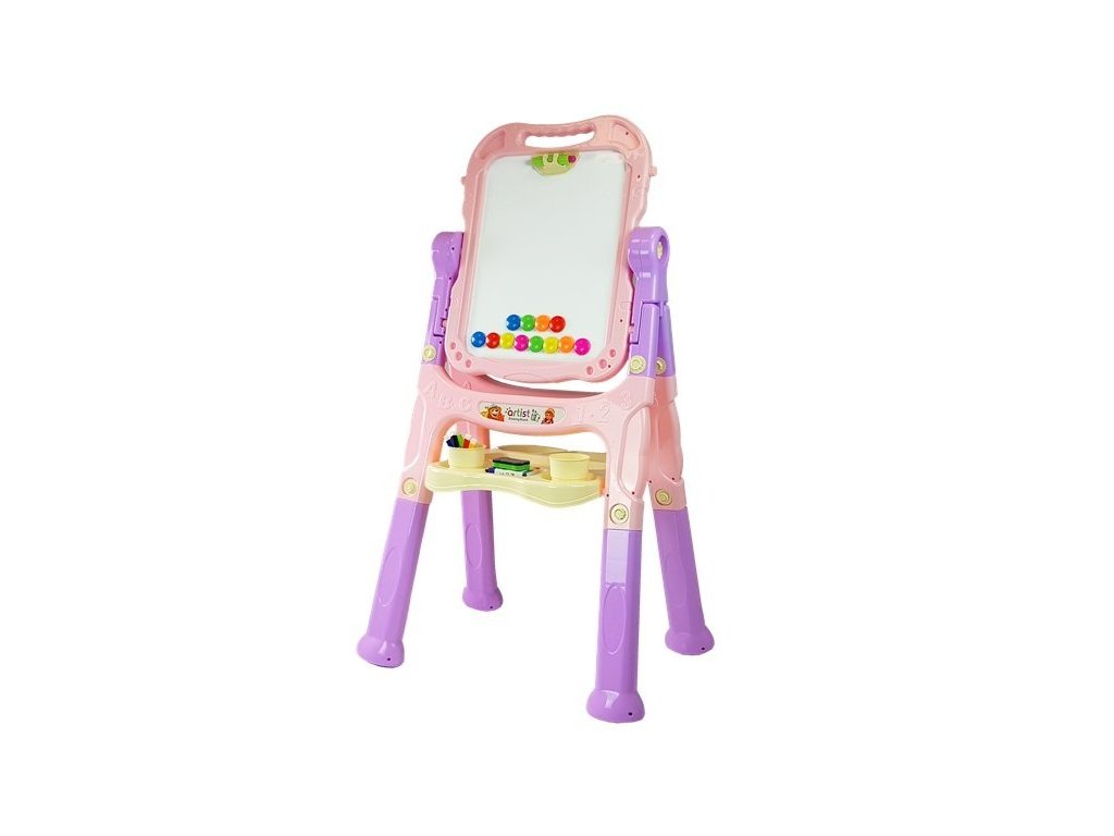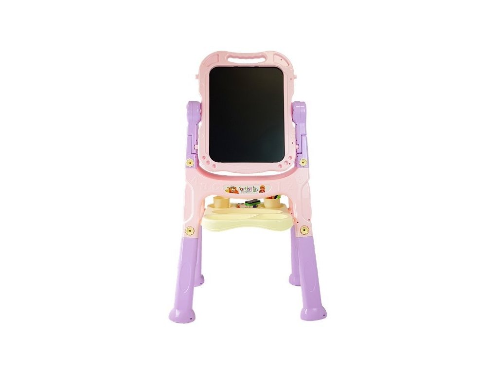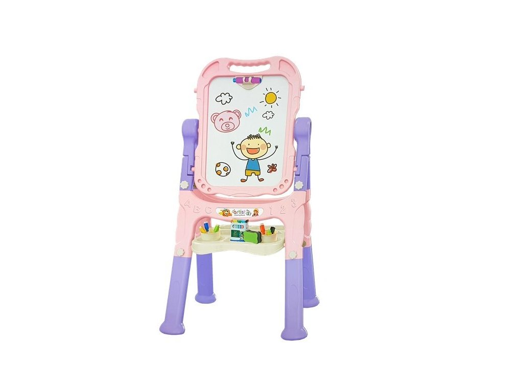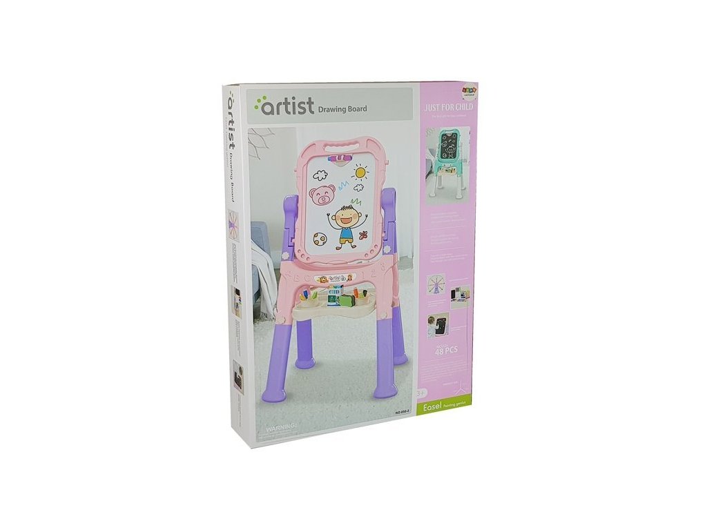 Tabla pentru copii are două suprafețe de desen - una albă pentru a fi folosită cu markere de șters și una neagră pentru desenul cu cretă. Poate fi rotit la 360 de grade. Setul include markere în negru, albastru, roșu, verde și galben, precum și un set de 12 bucăți de cretă. Deoarece tabla de joc este magnetică, conține magneți colorați pe care îi puteți folosi pentru a atașa imagini pe tablă. Întregul set conține 48 de elemente.