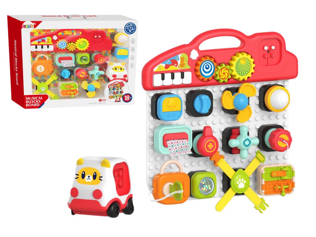 Tabla senzoriala pentru copii Panou educativ interactiv cu pian 15 parti