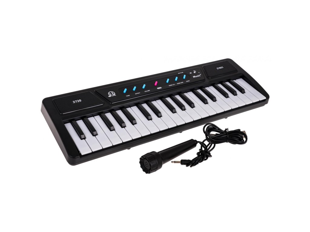 Keyboard-ul este echipat cu 22 de clape albe și 15 clape negre, care permit copilului să creeze liber melodii. Dispozitivul are butoane încorporate pentru controlul volumului, un buton demo și o funcție de oprire pentru operare ușoară și control deplin asupra jocului. Poate fi alimentat cu un cablu USB (inclus) sau cu 3 baterii AA, ceea ce îl face convenabil și portabil. Pachetul include un microfon, astfel încât micul artist să poată cânta și crea propriul spectacol muzical.