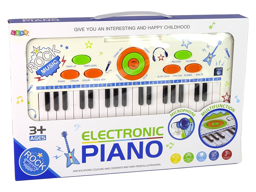 Tastatura electrică pentru copii este o alternativă excelentă pentru toți pasionații mici de muzică, precum și pentru începători. Este echipat cu 22 de taste albe și 15 chei negre. Are suport muzical si microfon .