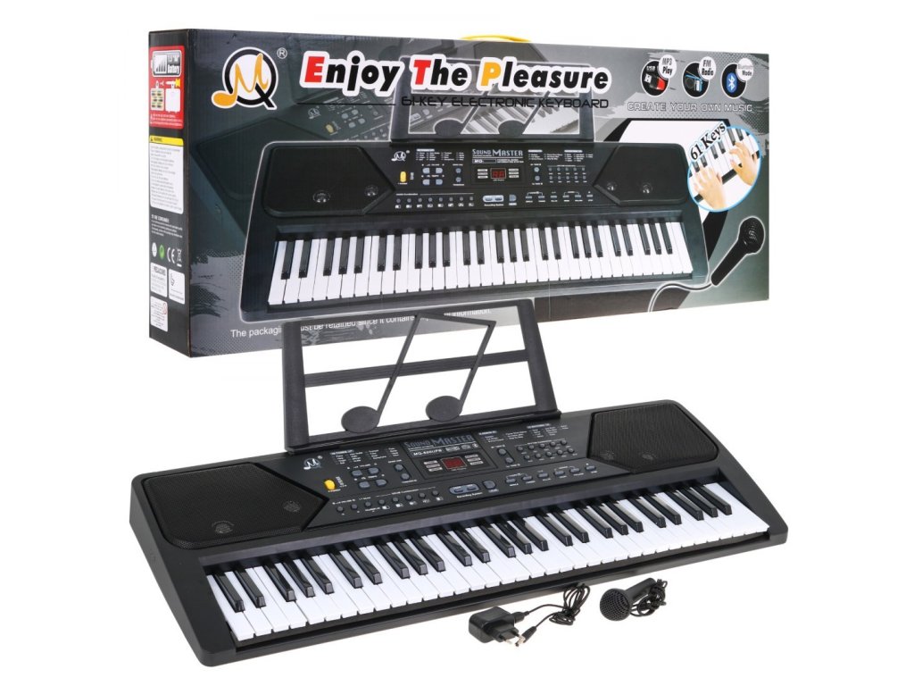 Tastatura multifunctionala mare va tine copiii ocupati o perioada indelungata. Conține 61 de chei. Datorită microfonului și cântecelor preînregistrate, copilul își poate crea propriile cântece, chiar și le poate înregistra și reda. Tastatura are si un suport muzical si poate fi conectata prin MP3 si Bluetooth.