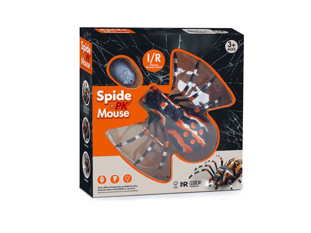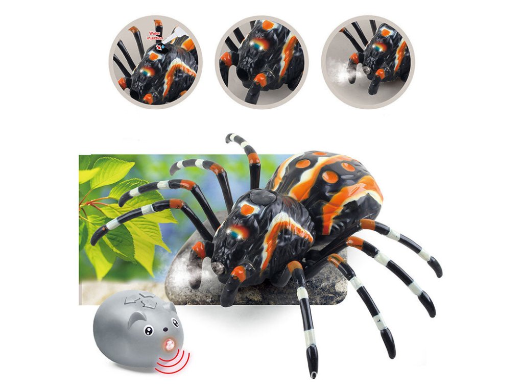 Păianjenul se mișcă fără probleme datorită unei perechi de roți ascunse și se poate roti la 360 de grade . Controlerul cu conexiune în infraroșu permite controlul ușor al direcției de mișcare. Ideal pentru iubitorii de animale sau ca mod original de divertisment.