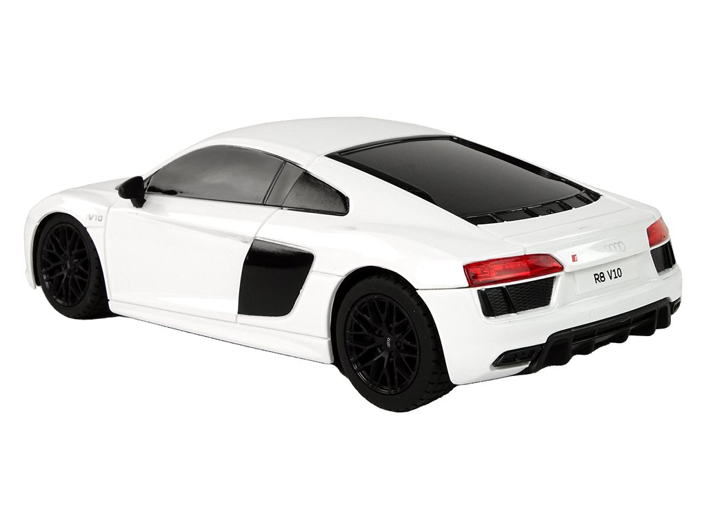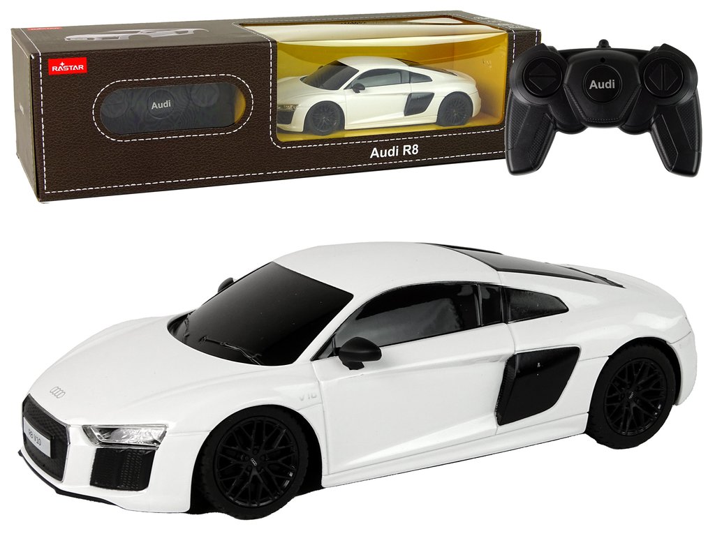 Mașina de jucărie cu telecomandă Audi R8 este un produs licențiat al Rastar. Mașina de jucărie este realizată la scară 1:24. Telecomanda functioneaza pe o frecventa de 27/40 MHz . Folosind telecomanda, putem controla conducerea mașinii de jucărie în toate direcțiile, adică înainte, înapoi, stânga și dreapta.