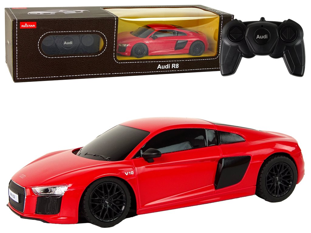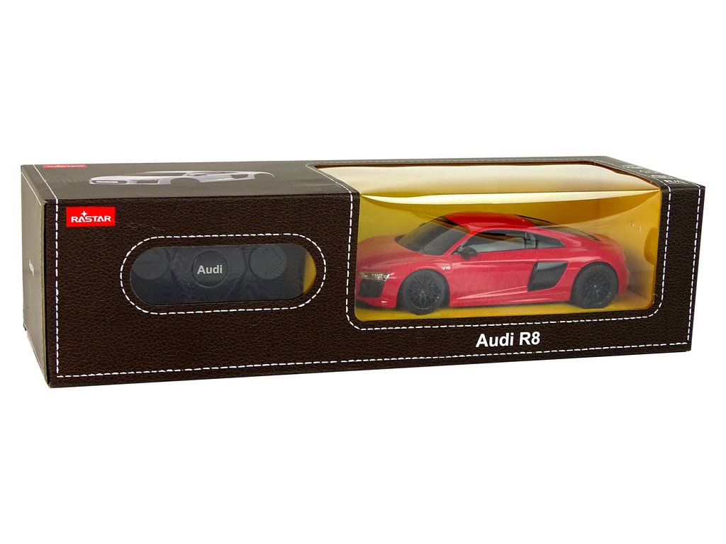 Mașina de jucărie cu telecomandă Audi R8 este un produs licențiat al Rastar. Mașina de jucărie este realizată la scară 1:24. Telecomanda functioneaza pe o frecventa de 27/40 MHz . Folosind telecomanda, putem controla conducerea mașinii de jucărie în toate direcțiile, adică înainte, înapoi, stânga și dreapta.
