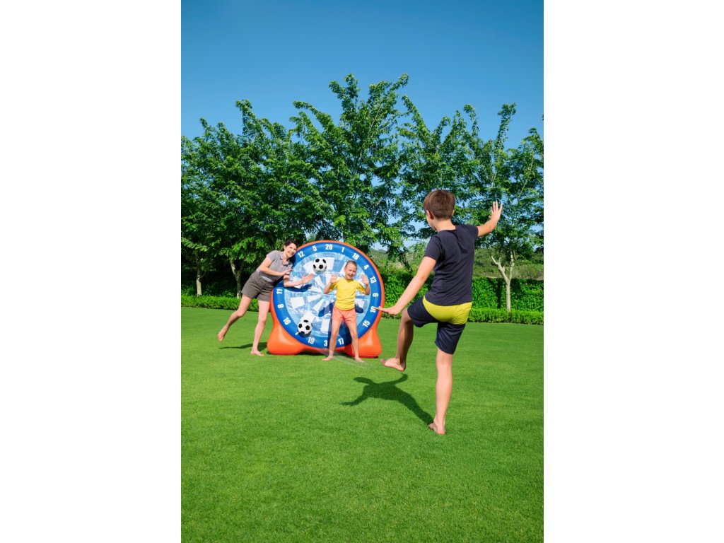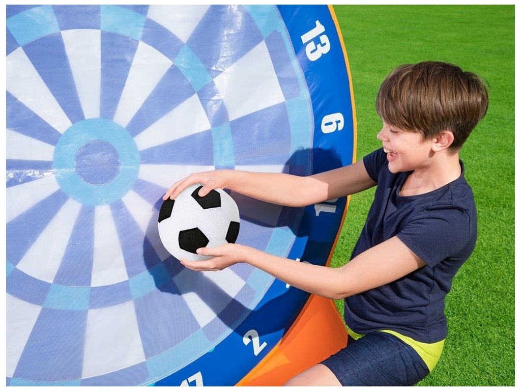 Ținta gonflabilă cu bile este distracția ideală pentru grădină. Bilele incluse se lipesc de țintă, astfel încât să vă puteți număra cu ușurință punctele și să vă concurați cu prietenii. Baza țintei este umplută cu apă pentru a menține o stabilitate mai mare. Tinta este realizata din vinil rezistent cu o grosime de 0,27 mm.
