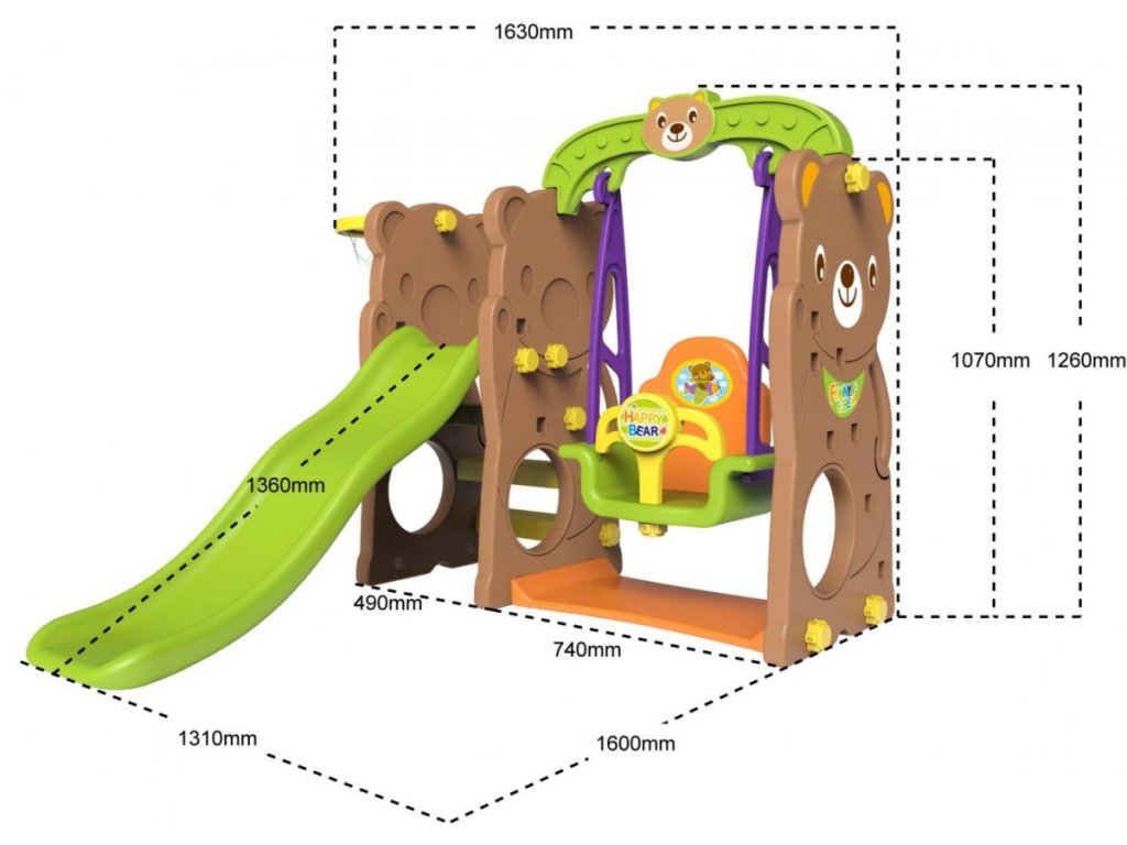Tobogan leagăn pentru copii coș de baschet 3 în 1 urs