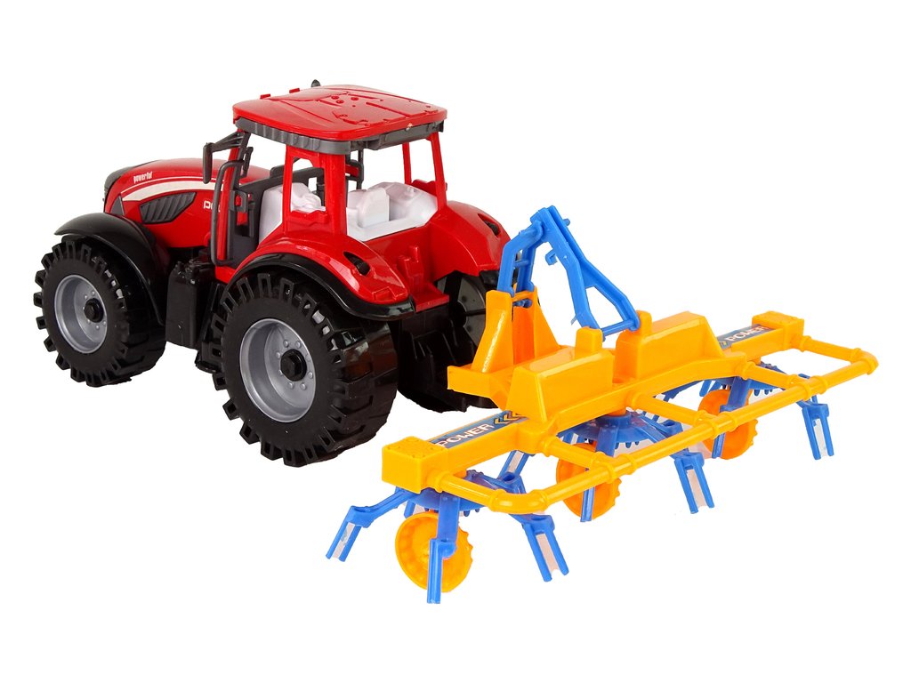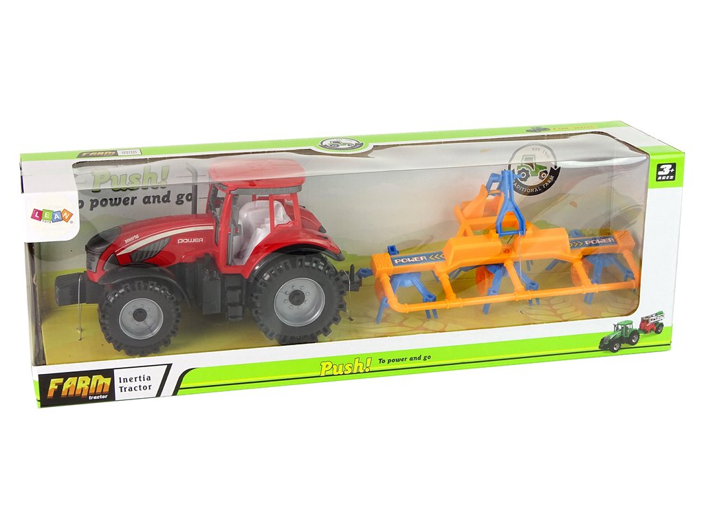 În acest set găsim un tractor roșu împreună cu o greblă de fân care este atașată la spatele vehiculului. Tractorul are o unitate de frecare care îi permite să se deplaseze înainte și înapoi. Părți ale greblei se mișcă în timpul conducerii.