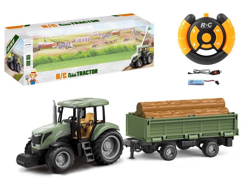 Pachetul include și o remorcă, pe care copiii pot încărca "lemn", ceea ce sporește și mai mult experiența de joc. Tractorul este alimentat de baterii, care sunt incluse în pachet. Controlul tractorului este foarte simplu datorită telecomenzii intuitive.