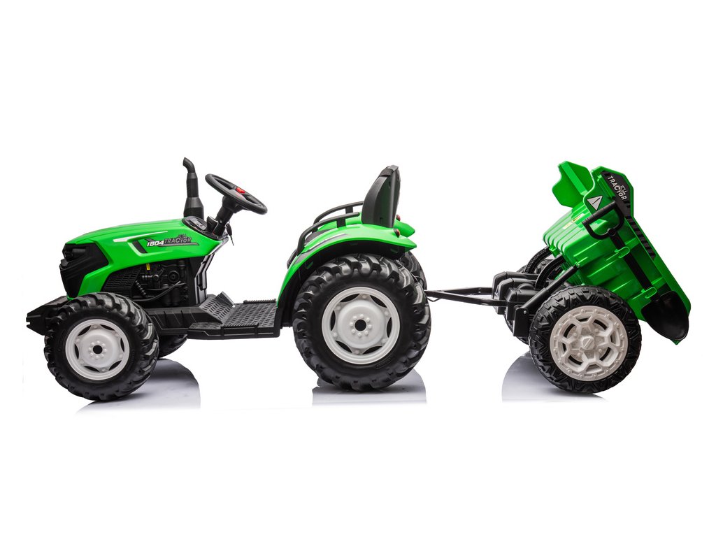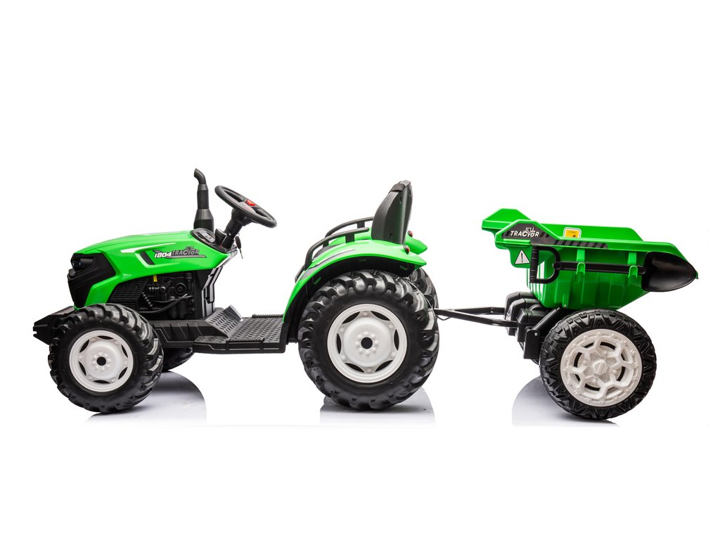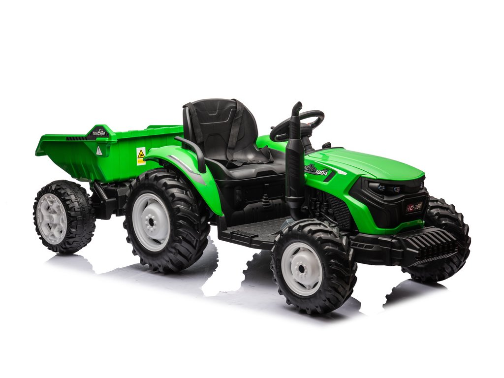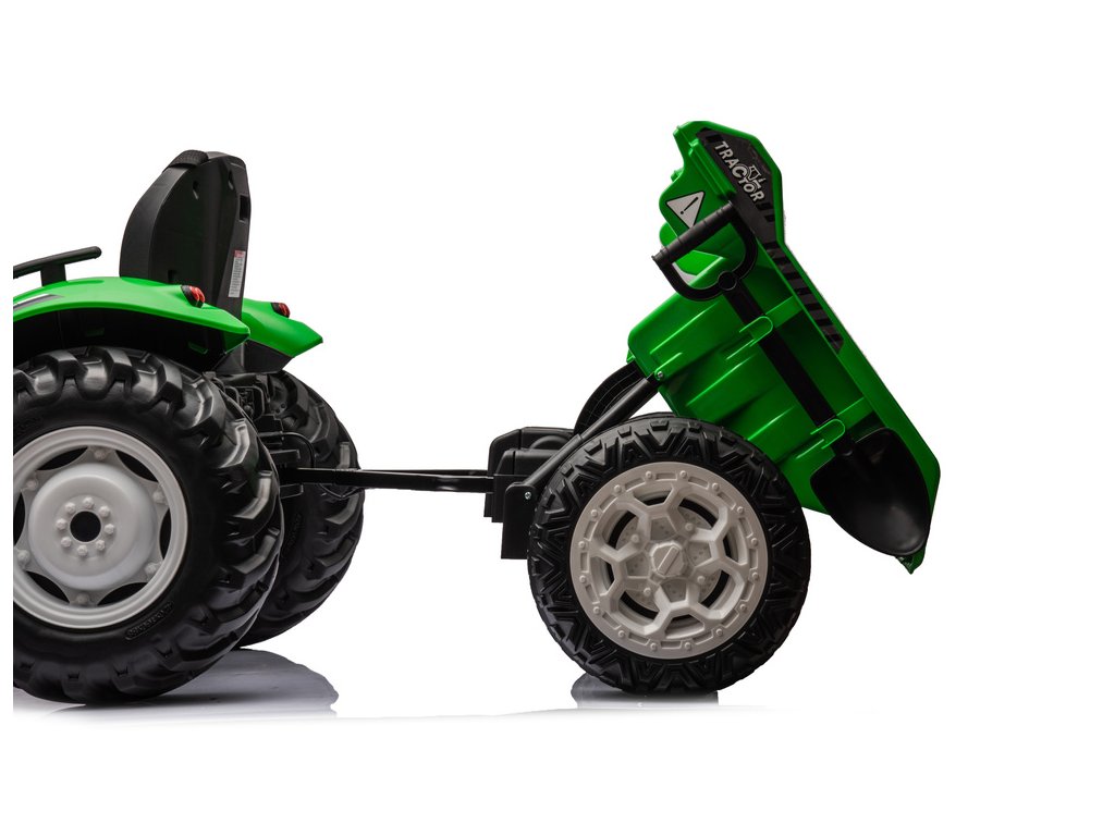 Designul tractorului electric este bazat pe patru roți. Marele avantaj al materialului EVA din care sunt fabricate anvelopele este durabilitatea ridicată și rezistența la perforare, datorită cărora copilul își poate conduce vehiculul pe diverse tipuri de suprafețe. Tractorul pentru copii este alimentat de o baterie de 24V7Ah, care este însoțită de 2 motoare de 95W. Tractorul este destinat băieților și fetelor cu vârsta peste 3 ani - singura limitare este sarcina peste 30 kg.