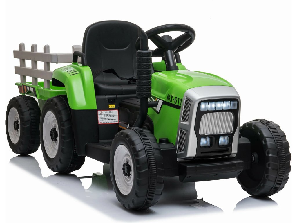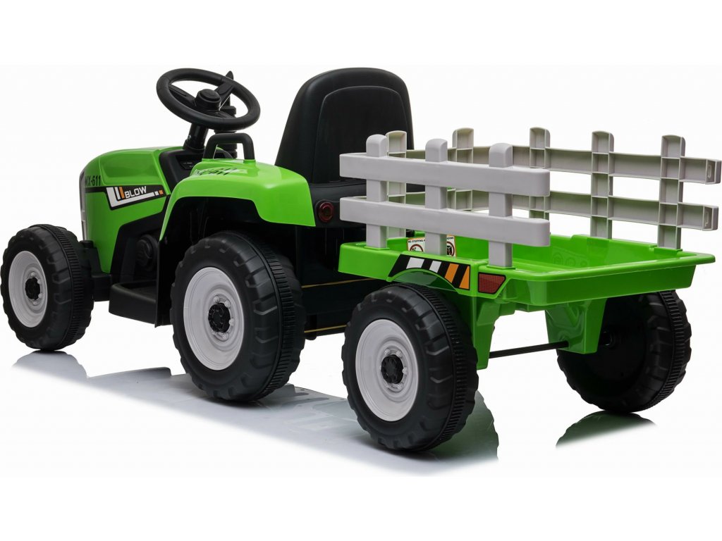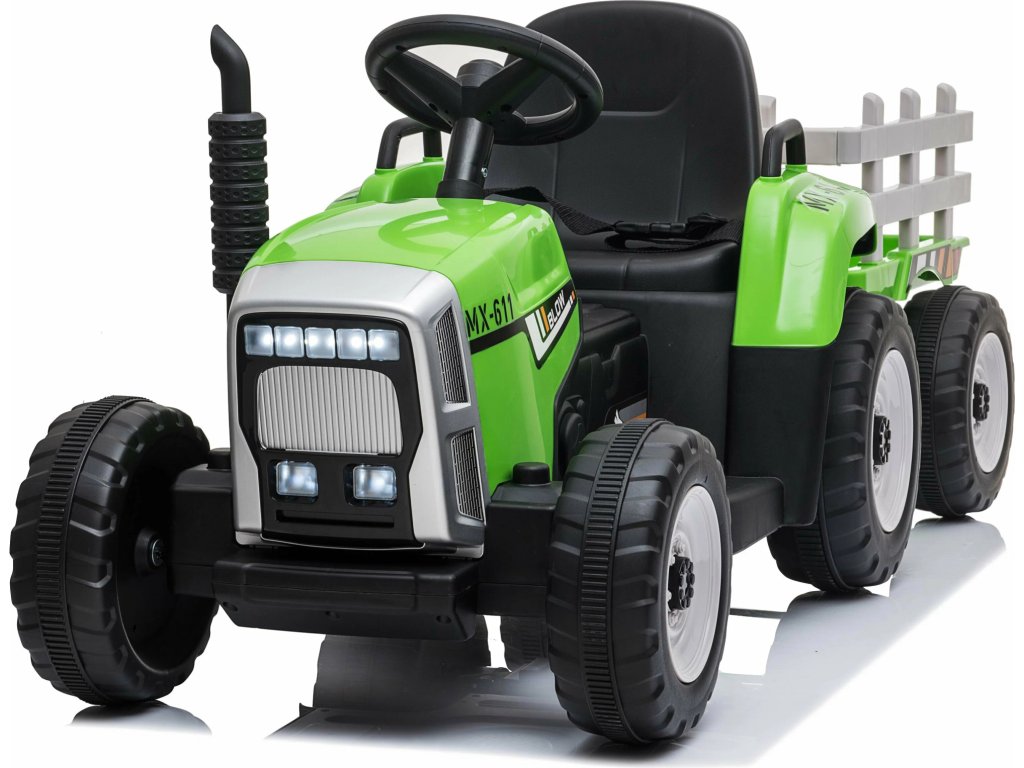 Designul tractorului electric se bazează pe patru roți. Roți ușoare din plastic anti-puncție. Tractorul pentru copii este alimentat de o baterie de 12V4.5Ah, care este insotita de motoare 2x45W. Tractorul este destinat atât băieților, cât și fetelor - singura limitare este o sarcină de până la 30 kg.