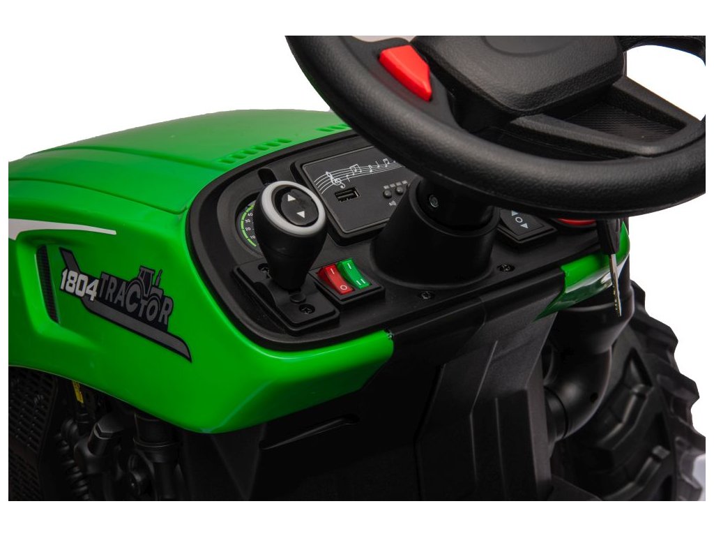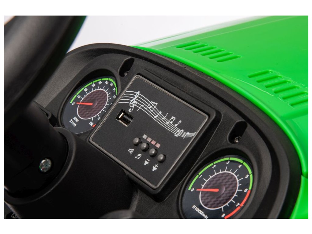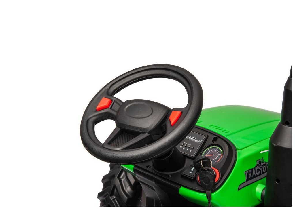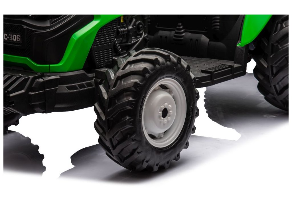 Tractorul electric HC-306 nu trebuie să lipsească în nici un garaj pentru copii. Vehiculul este alimentat de o baterie de 24V 7Ah . Sarcina maximă a căruciorului este de 30 kg . În timpul plimbării, copilul va fi cu siguranță fascinat de panoul muzical cu Bluetooth și intrare USB.