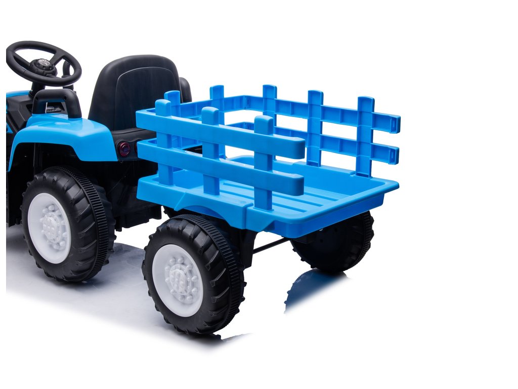 Tractorul electric pentru copii New Holland cu remorcă are două motoare de 45W și o baterie de 12V 4.5Ah. Tractorul are lumini LED din față și din spate și o bară muzicală cu intrare MP3, USB și card SD. Capacitatea maximă de transport a tractorului este de 35 kg .