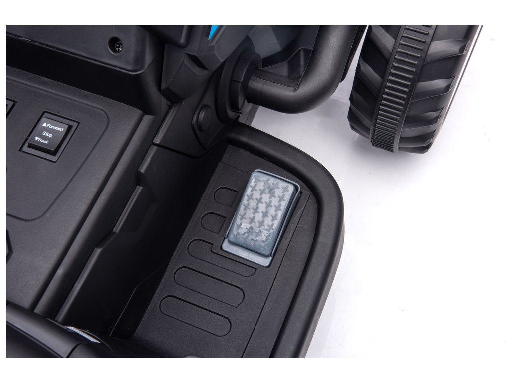 Tractorul are roți din plastic și scaun. Tractorul se oprește automat când este apăsată pedala de accelerație. Tractorul are un comutator de viteză, astfel încât poate fi condus încet sau rapid. Tractorul atinge o viteză de până la 5 km/h.