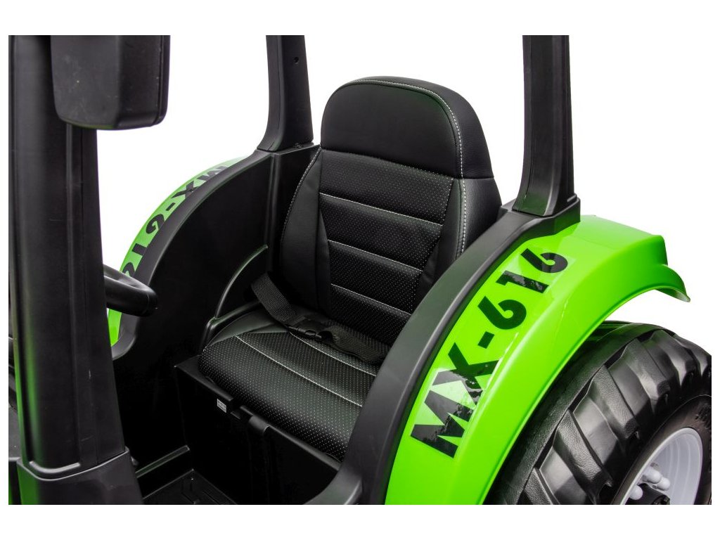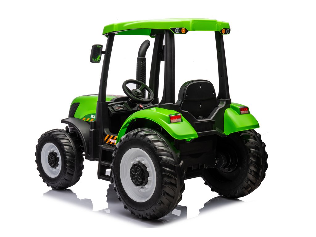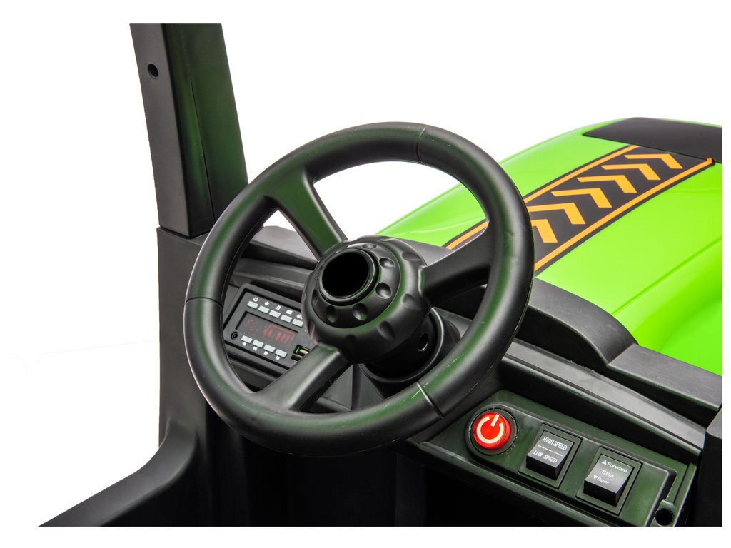 Tractor electric nu trebuie să lipsească în nici un garaj pentru copii. Vehiculul este alimentat de două baterii cu o capacitate de 12V 10Ah . Sarcina maximă a căruciorului este de 35 kg . În timpul călătoriei, panoul muzical cu MP3 și USB îl va interesa cu siguranță pe copil .