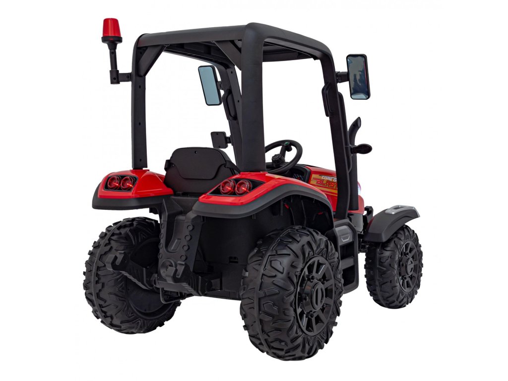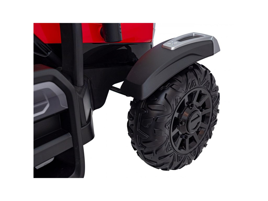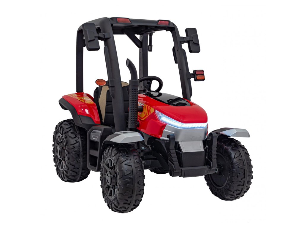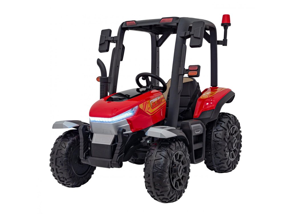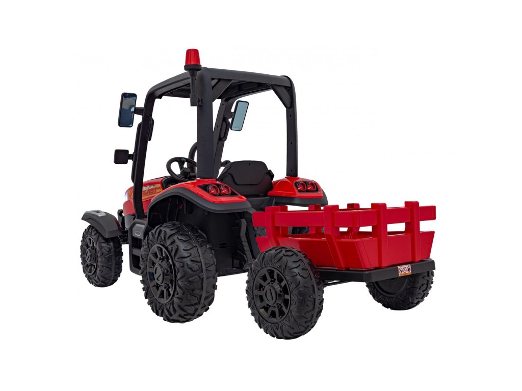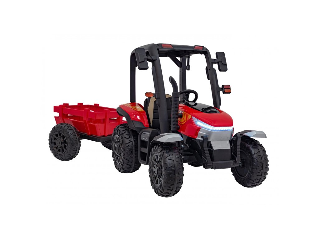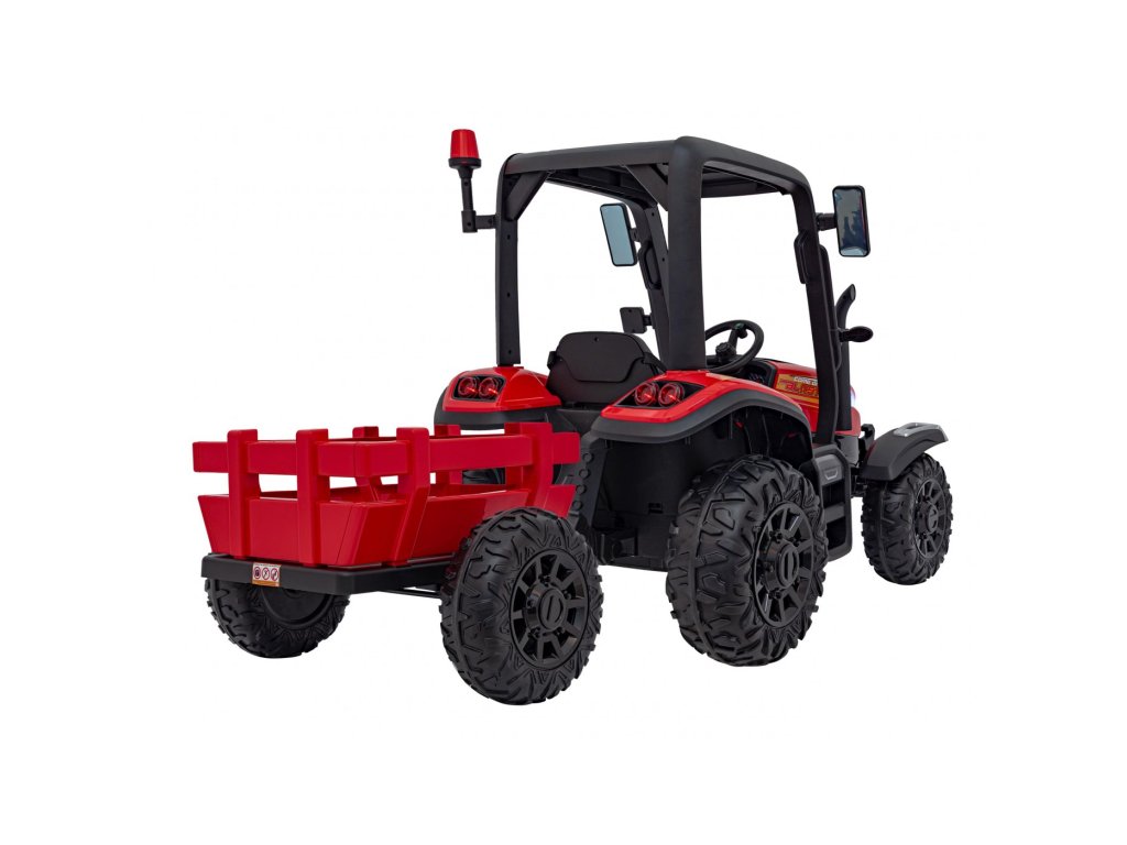 Tractorul electric pentru copii cu remorca are doua motoare foarte puternice de 200W si o baterie cu o capacitate de 24V 7Ah. Tractorul are lumini LED din față și din spate și un panou muzical cu intrare USB, MP3 și Bluetooth . Capacitatea maximă de încărcare a tractorului este de 30 kg .