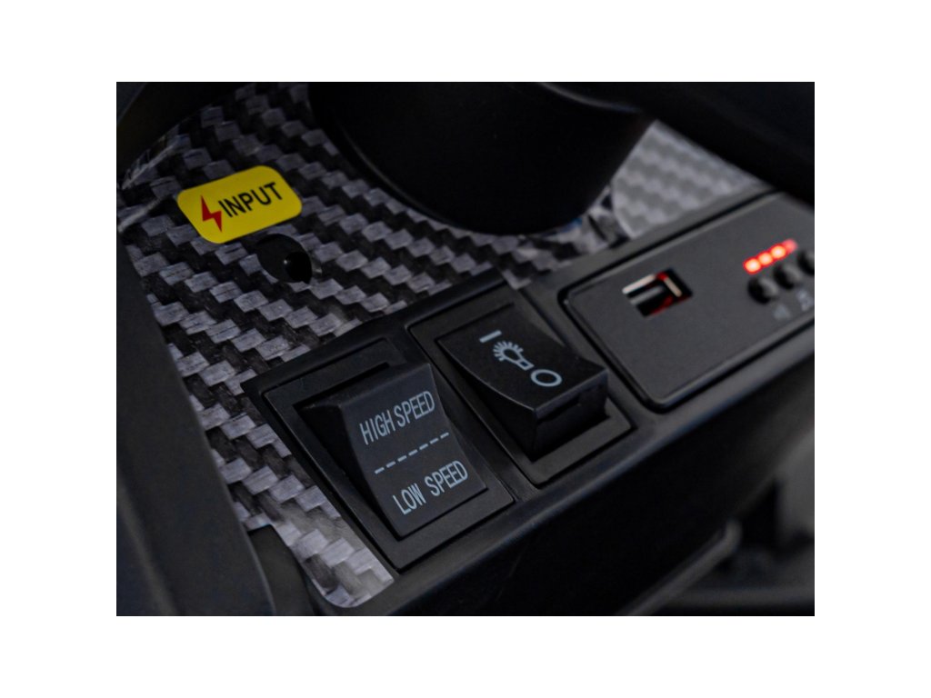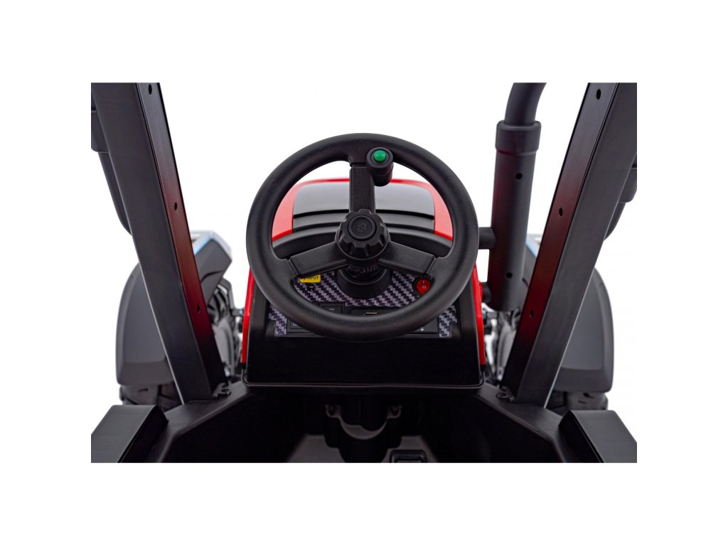 Tractorul este echipat cu roți moi EVA și un scaun îmbrăcat în piele ecologică pentru confort maxim. Se oprește automat când pedala de accelerație este eliberată. Datorită comutatorului de viteză, permite conducerea în două moduri – lent și rapid. Vehiculul poate fi controlat și cu o telecomandă , care permite reglarea vitezei, schimbarea direcției și are un buton de siguranță Stop pentru oprirea imediată a tractorului.