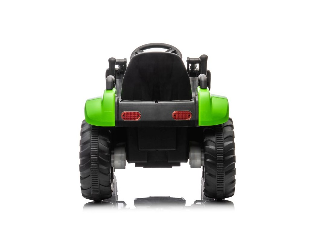 Tractorul electric pentru copii se adaptează nu numai terenului consolidat datorită construcției sale și a roților masive. Tractorul are două motoare cu o putere totală de 90W. Operarea este foarte simplă, trebuie doar să apăsați pedala de accelerație și puteți merge pe teren accidentat. După ce luați piciorul de pe pedala de accelerație, tractorul se oprește automat. Muzica va face cu siguranță călătoria mai plăcută, pe care o puteți reda singur datorită intrărilor MP3 și USB.