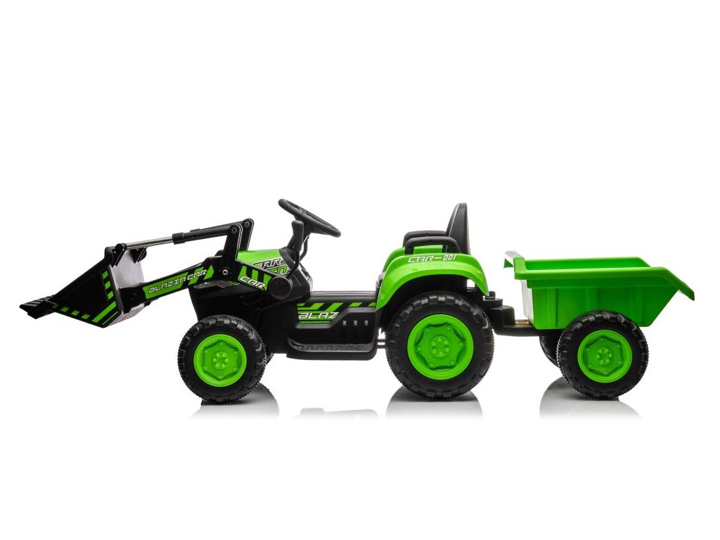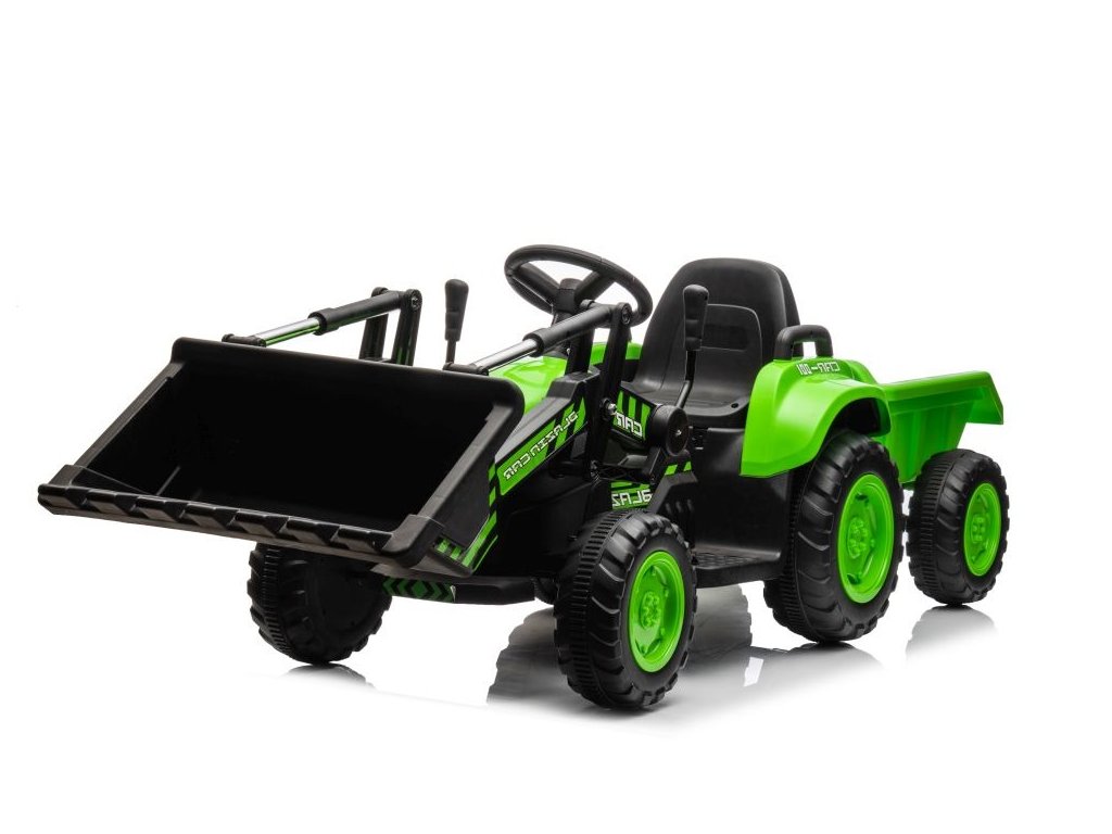 Tractor electric pentru copii cu lamă și remorcă verde - Incomplet - S-BL002A-GREEN