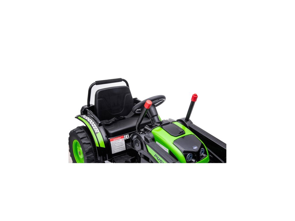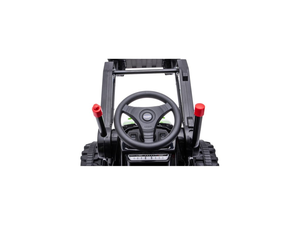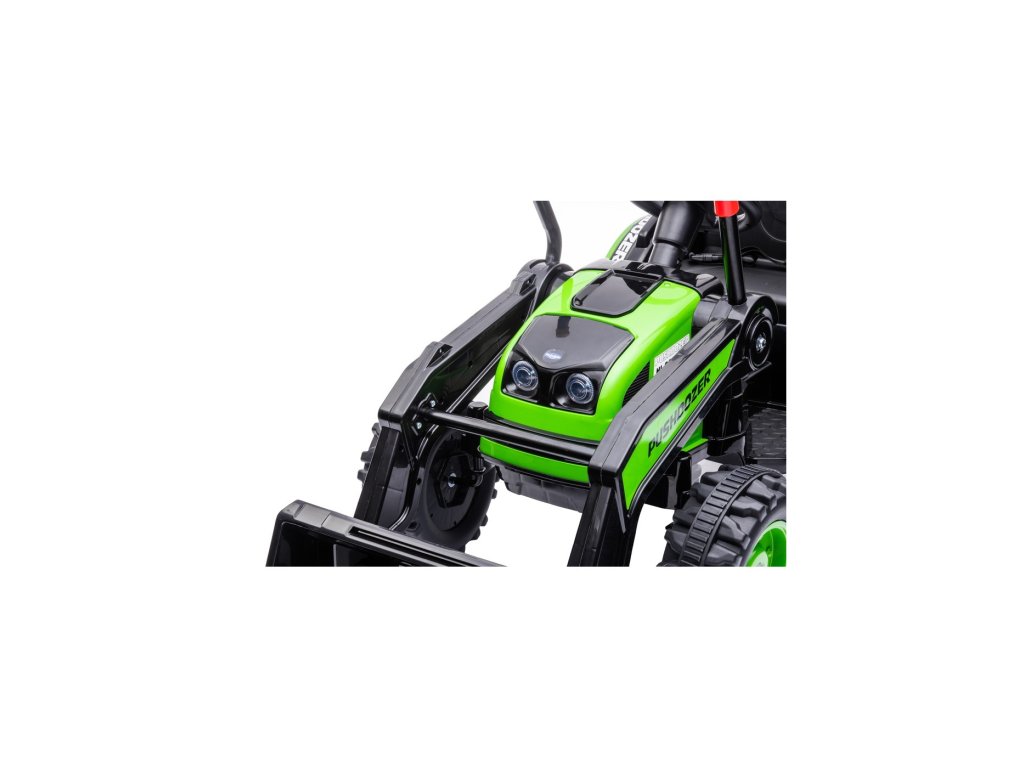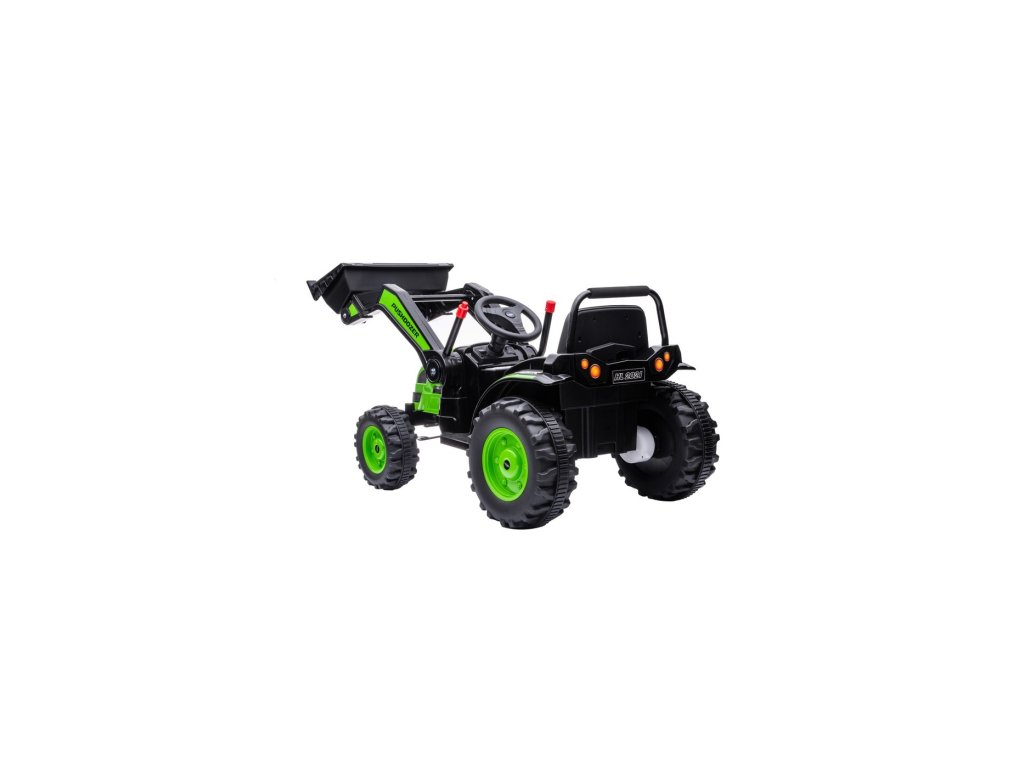Tractorul electric pentru copii are două motoare cu o putere de 35W și o baterie cu o capacitate de 12V 7Ah . Copilul stă într-un scaun confortabil. Efectele de sunet și lumini vor face cu siguranță călătoria mai plăcută. Tractorul este echipat cu un panou muzical cu MP3, Radio FM, USB, Bluetooth și melodii pre-redate . Tractorul are o găleată care coboară și ridică, iar brațul lucrează într-un plan sus/jos.