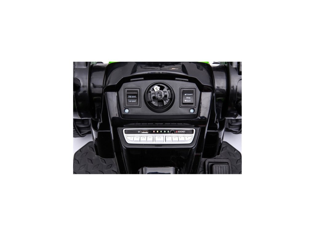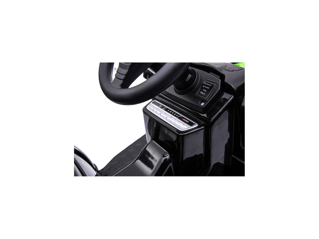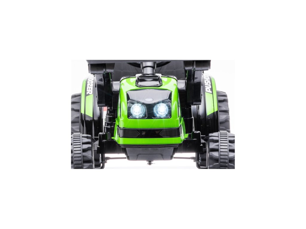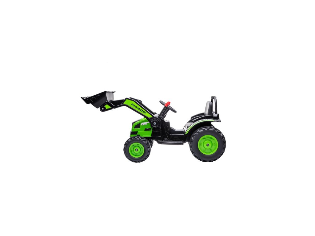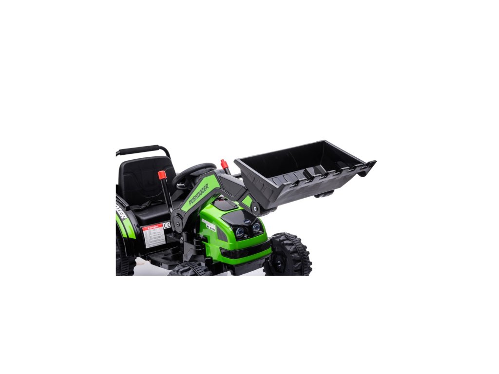 Tractorul electric pentru copii are două motoare cu o putere de 35W și o baterie cu o capacitate de 12V 7Ah . Copilul stă într-un scaun confortabil. Efectele de sunet și lumini vor face cu siguranță călătoria mai plăcută. Tractorul este echipat cu un panou muzical cu MP3, Radio FM, USB, Bluetooth și melodii pre-redate . Tractorul are o găleată care coboară și ridică, iar brațul lucrează într-un plan sus/jos.