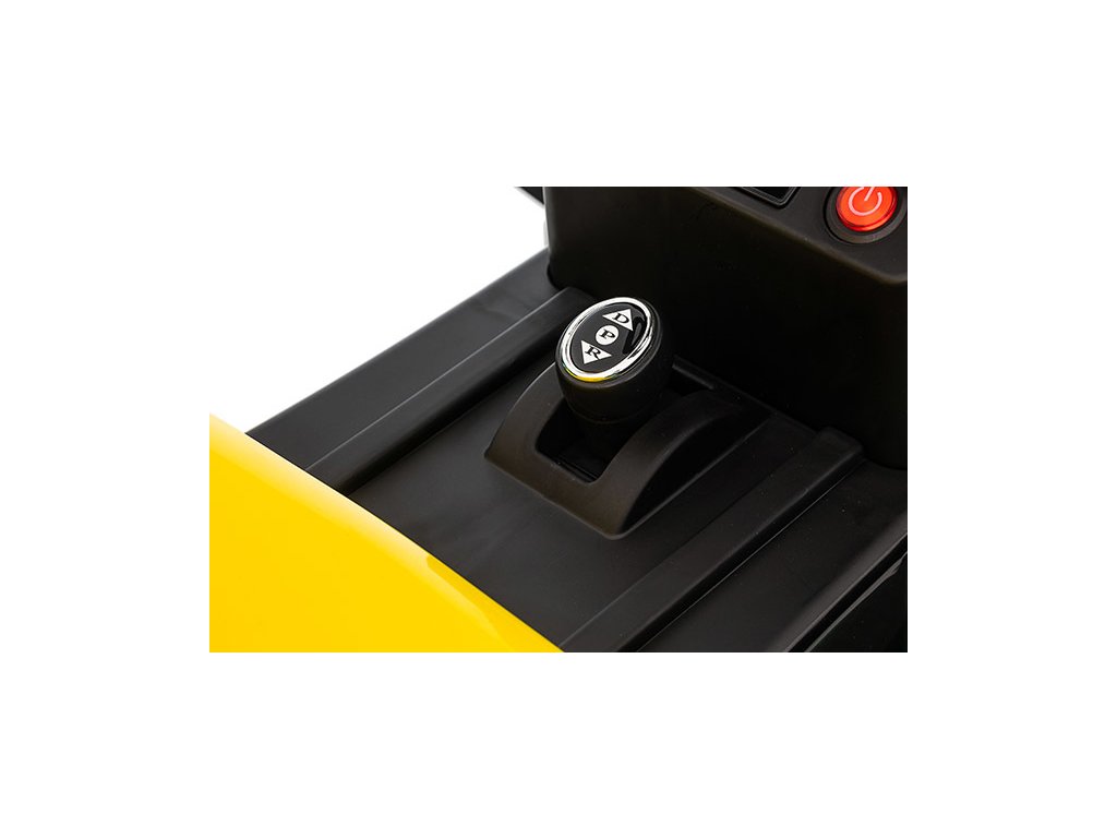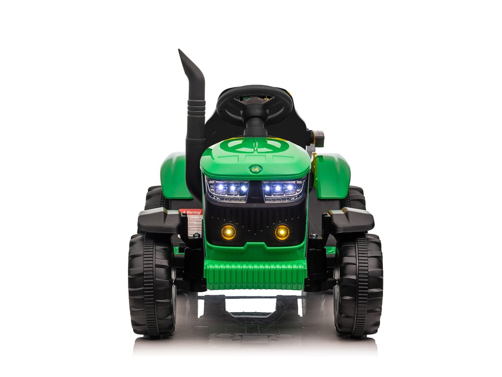 Scaunul confortabil cu centuri de siguranță asigură siguranța copilului în timpul mersului. Panoul muzical cu USB, intrare AUX și slot pentru card de memorie oferă divertisment și interactivitate. Farurile frontale contribuie la un aspect mai realist al tractorului.
