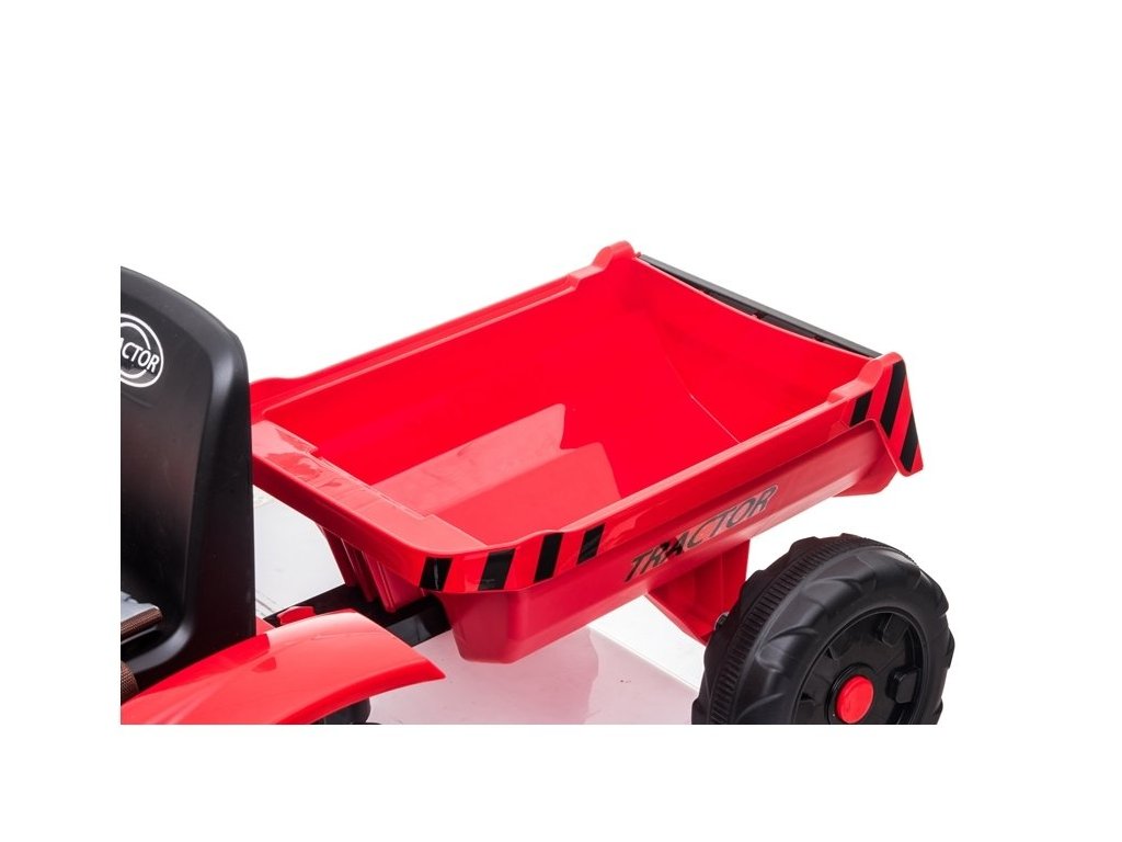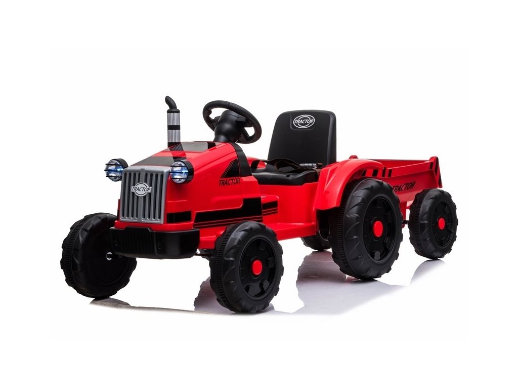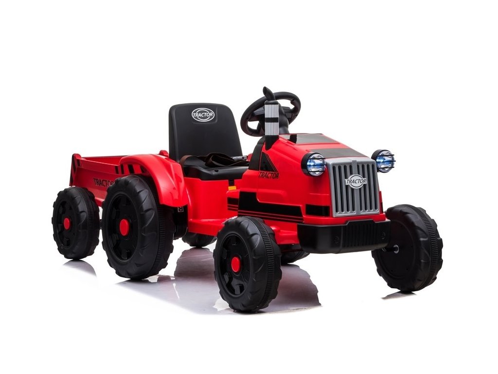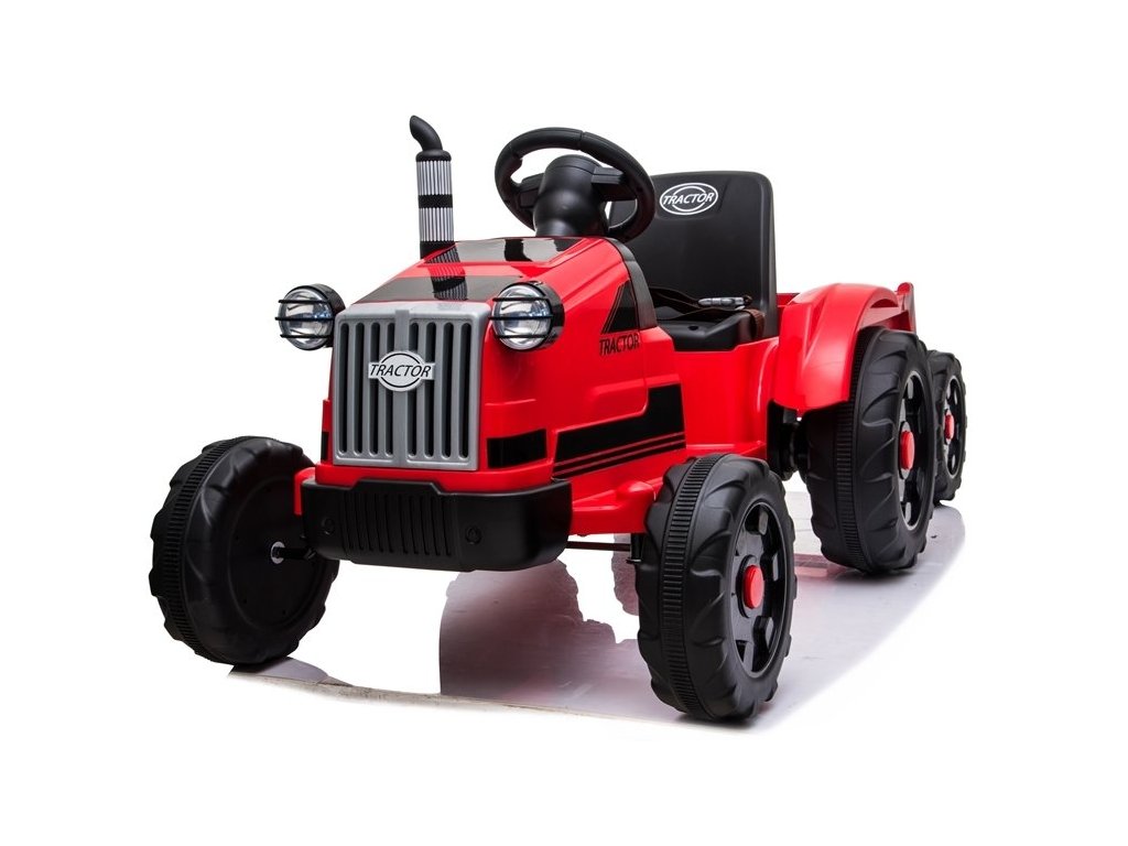 Designul tractorului electric se bazează pe patru roți. Aceste roți au o structură reșapată, datorită căreia copilul își poate conduce vehiculul pe diferite tipuri de suprafețe. Tractorul pentru copii este alimentat de o baterie de 12V7Ah, care este insotita de motoare 2x45W. Aceste componente permit conducerea cu o viteză de 2 până la 4 km/h. Tractorul este conceput pentru băieți și fete mai mari de 3 ani - singura limitare este o sarcină de peste 35 kg.