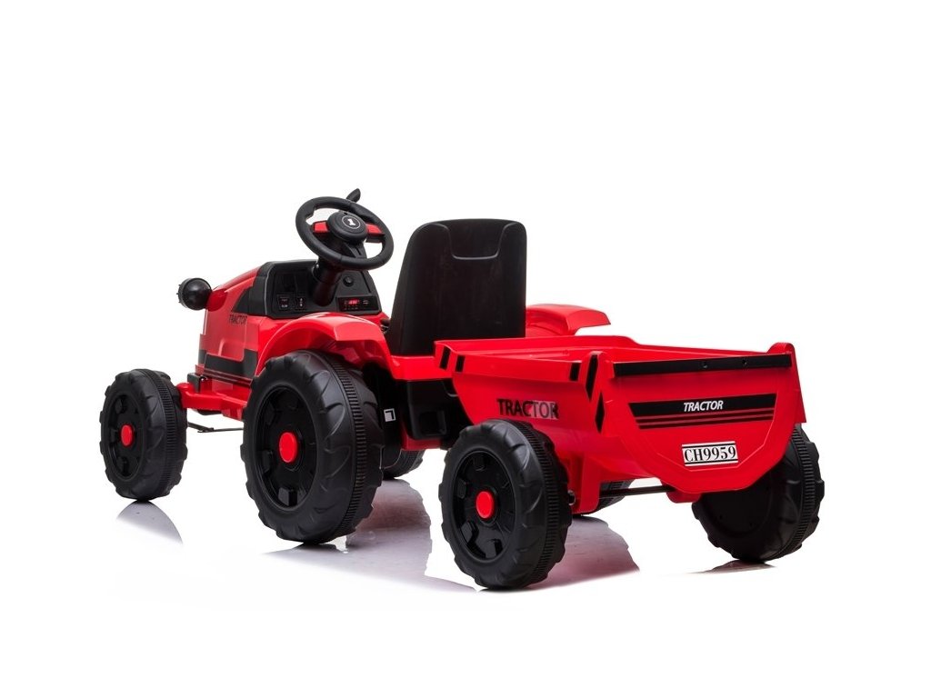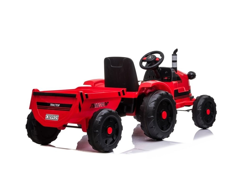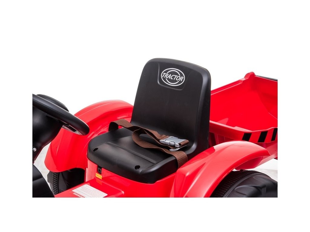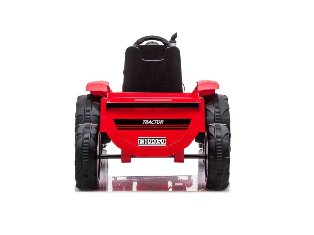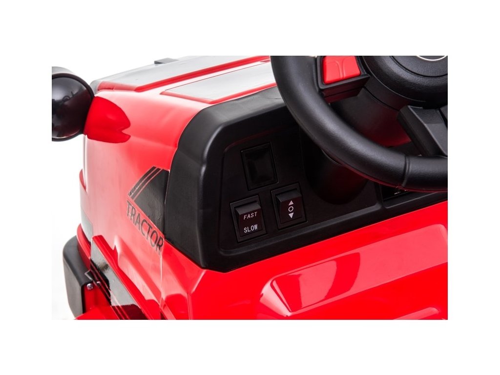 Designul tractorului electric se bazează pe patru roți. Aceste roți au o structură reșapată, datorită căreia copilul își poate conduce vehiculul pe diferite tipuri de suprafețe. Tractorul pentru copii este alimentat de o baterie de 12V7Ah, care este insotita de motoare 2x45W. Aceste componente permit conducerea cu o viteză de 2 până la 4 km/h. Tractorul este conceput pentru băieți și fete mai mari de 3 ani - singura limitare este o sarcină de peste 35 kg.