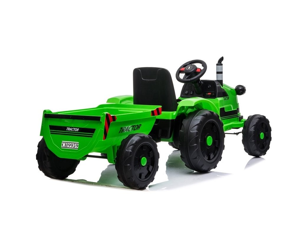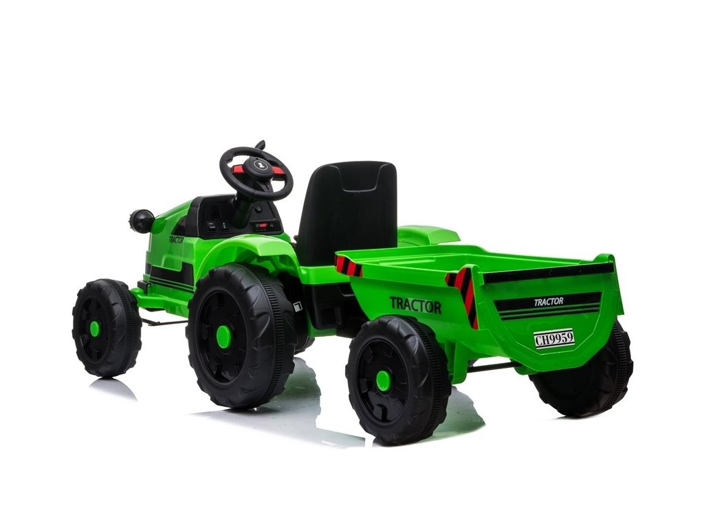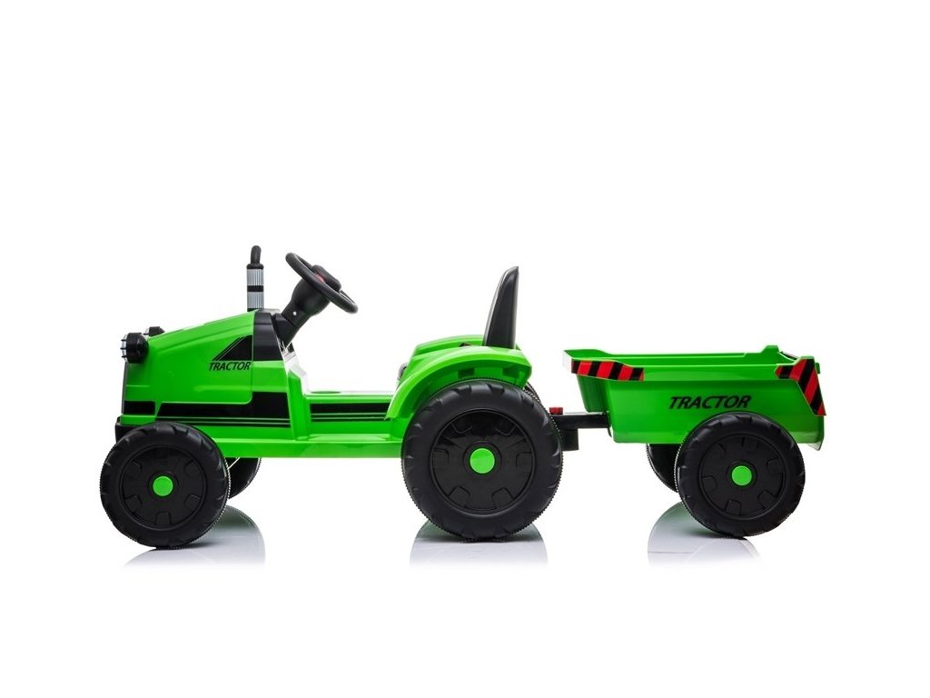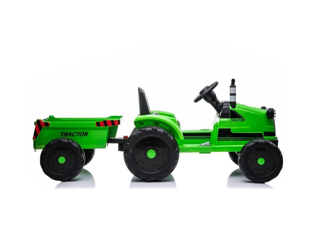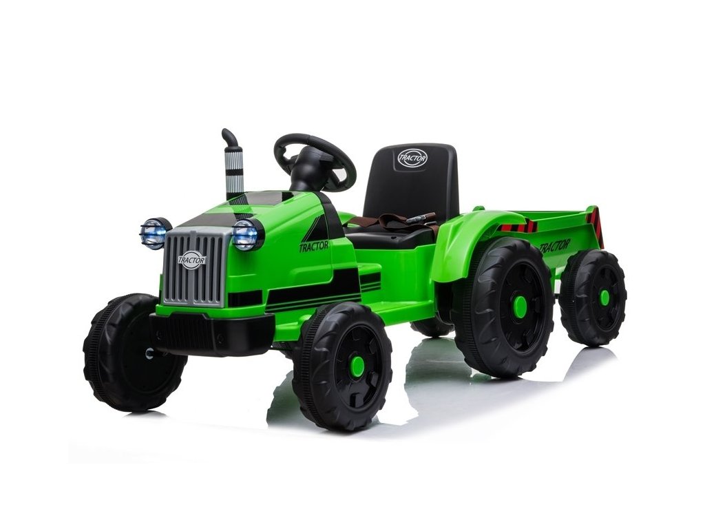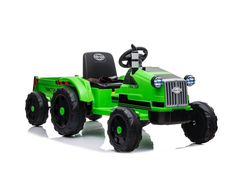Designul tractorului electric se bazează pe patru roți. Aceste roți au o structură reșapată, datorită căreia copilul își poate conduce vehiculul pe diferite tipuri de suprafețe. Tractorul pentru copii este alimentat de o baterie de 12V7Ah, care este insotita de motoare 2x45W. Aceste componente permit conducerea cu o viteză de 2 până la 4 km/h. Tractorul este conceput pentru băieți și fete mai mari de 3 ani - singura limitare este o sarcină de peste 35 kg.