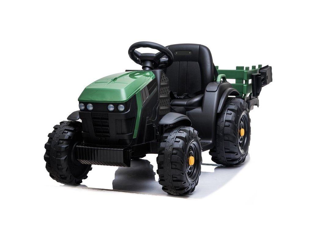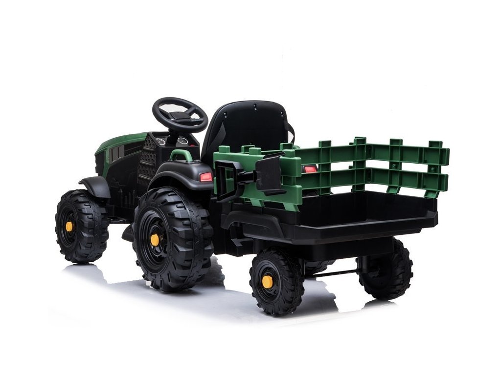 Tractorul electric pentru copii vine pe roți moi din spumă EVA , care sunt silențioase și se pot descurca nu numai cu suprafața pavată. Tractorul este pentru toți copiii cu o capacitate de încărcare de până la 30 kg .