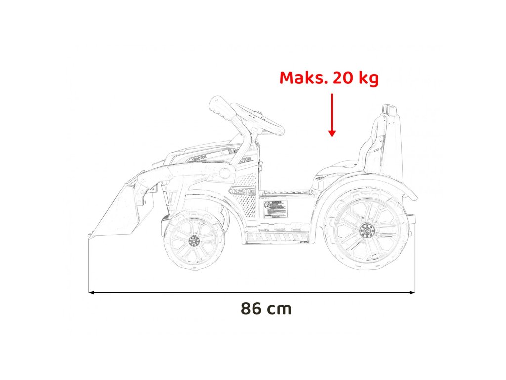 Datorită designului său și roților masive , tractorul electric pentru copii se adaptează nu numai terenului asfaltat. Tractorul are un motor de 25W. Controlul este foarte simplu, doar apăsați pedala de accelerație și puteți pleca în off-road. Când eliberați piciorul de pe pedala de accelerație, tractorul se oprește automat. Muzica integrată va face cu siguranță călătoria mai plăcută.