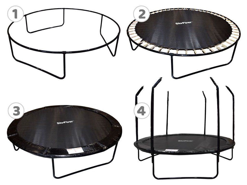 - Tuburile sunt atașate de picioarele trambulinei cu șuruburi puternice