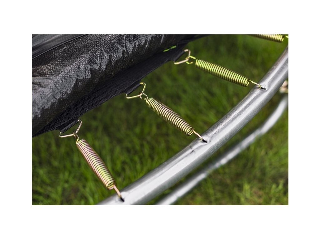 Vă prezentăm o trambulină de grădină de înaltă calitate. Includerea în activitățile zilnice te va ajuta să arzi excesul de grăsime, să menții o silueta subțire sau să-ți îmbunătățești starea fizică - nici măcar nu vei simți că te antrenezi. Trambulina PRO mentionata in marimea 366 cm este un produs sigur, dovada marcajului CE. Construcția sa a fost realizată din materiale certificate de cea mai înaltă calitate, făcându-l rezistent la coroziune sau condiții meteorologice nefavorabile. Înălțimea totală a plasei, ajungând la 180 cm, îți permite să înnebunești și să sari fără teamă. Puteți împărți trambulina Lean Sport PRO 12 FT în două moduri. Pentru a crește nivelul de siguranță, montați plasa în structură - acest lucru va preveni contactul dintre săriturile în stâlp și arcuri, reducând riscul de rănire. Totuși, dacă doriți mai mult spațiu pentru a sări, astfel încât mai mulți oameni să se poată juca în același timp, construiți structura construind plasa în exterior - așezând-o direct pe stâlpii protejați de spumă. Distanța aproximativă de la ștafetă până la sol este de 80 cm - setul include o scară în trei trepte pentru a facilita intrarea și ieșirea din trambulină. Această trambulină este destinată tuturor săritorilor - copii de la 3 ani și adulți.