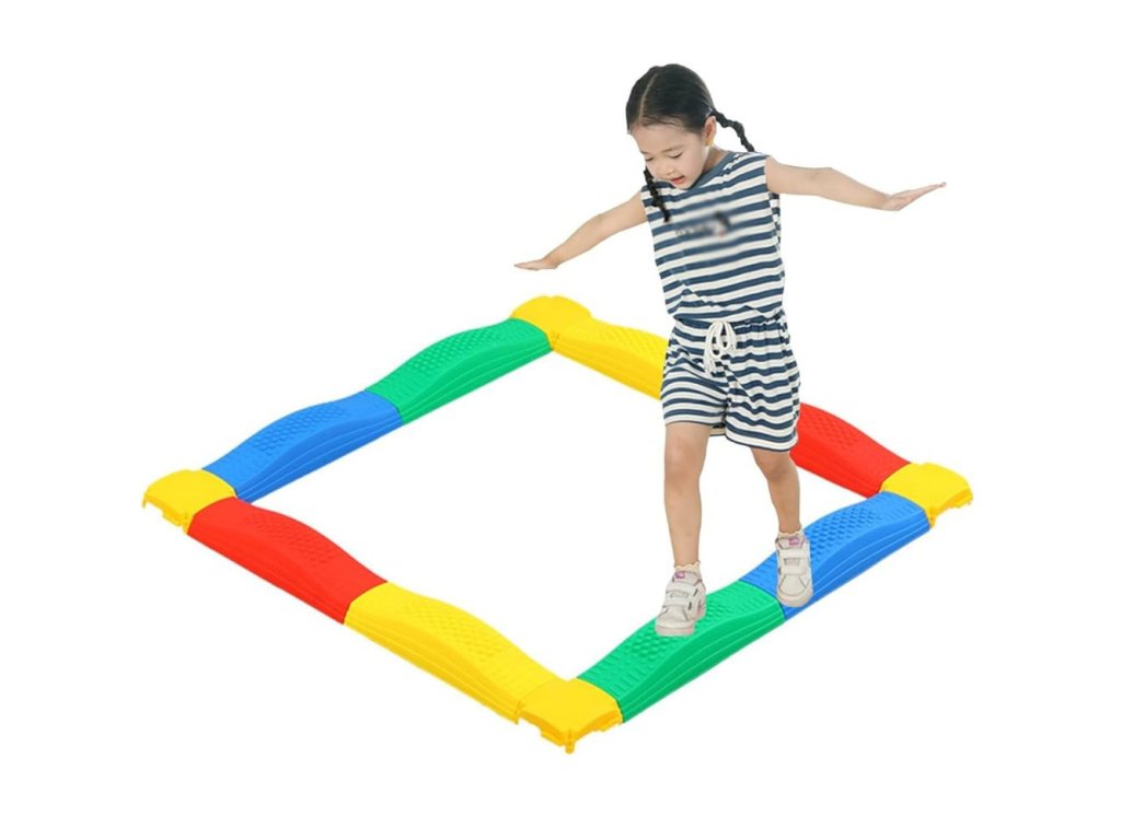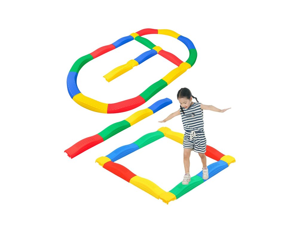 Pista senzorială colorată cu funcție de echilibru este un set inovator care susține dezvoltarea abilităților motorii grosiere, a coordonării motorii, a echilibrului și a integrării senzoriale la copii. Setul este format din 16 plăci senzoriale cu o structură rugoasă, convexă, care stimulează receptorii picioarelor și 4 elemente de conectare flexibile din care se pot asambla diverse trasee - de la linii drepte la trasee răsucite și 16 trasee închise în formă de cerc sau pătrat.
