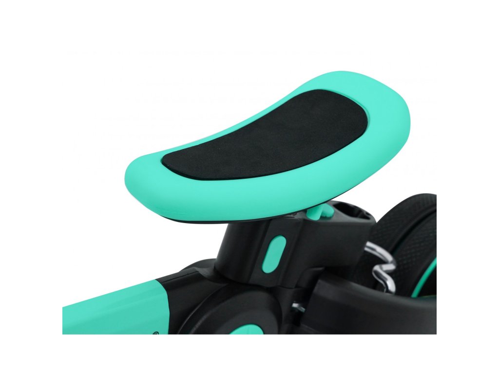 Tricicleta pentru copii sprijină activitatea fizică la copiii mici. Un cadru subțire, un scaun moale confortabil, care poate fi reglat pe două înălțimi și mânere de cauciuc de pe ghidon asigură o călătorie confortabilă. Pedalele și tija de împingere pot fi îndepărtate cu ușurință. Tricicleta este echipată cu un suport pentru băuturi și roți de cauciuc.