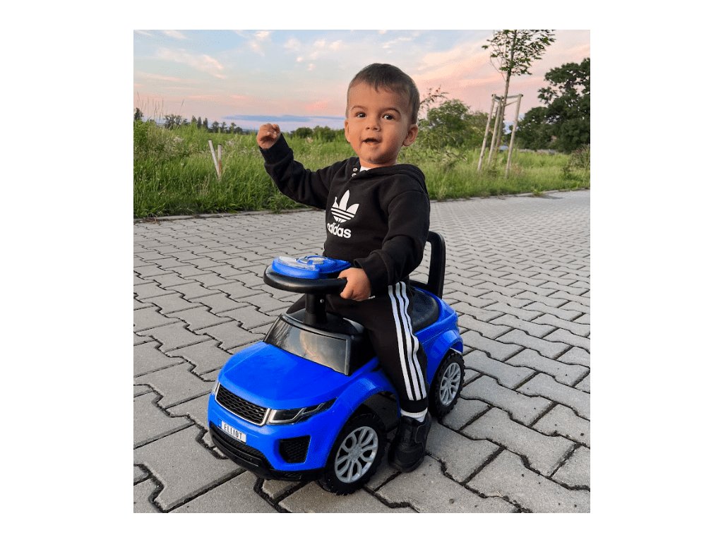 Bicicletă de echilibru pentru copii, stil Range Rover, roți albastre din cauciuc