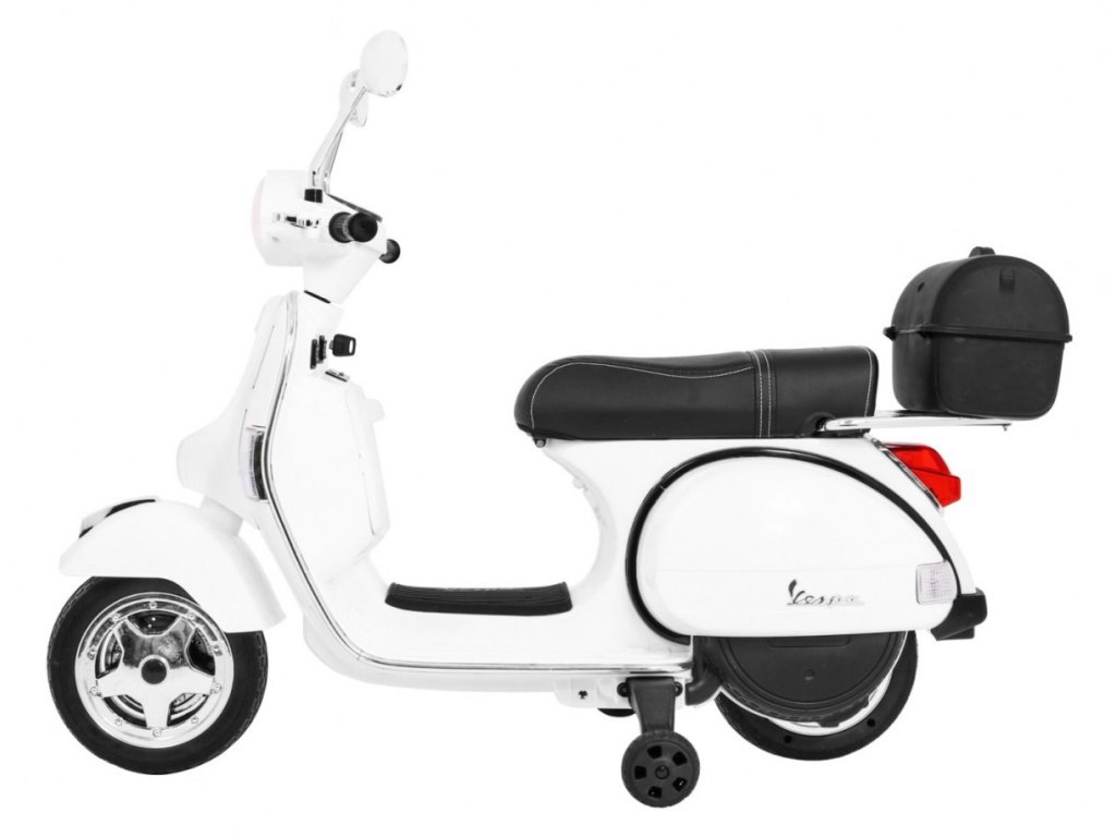 Cine nu cunoaste scuterul marca Vespa ? Chiar și copilul tău poate conduce acest scuter legendar, datorită acestui model licențiat. Trotineta are un scaun de înaltă calitate acoperit cu piele ecologică moale și roți moi din EVA. Pe lângă toate acestea, are lumini LED frumoase din față și din spate și poate reda fișiere MP3, astfel încât copilul să-și asculte melodia preferată în timp ce conduce și să-și îmbunătățească abilitățile de conducere în același timp.