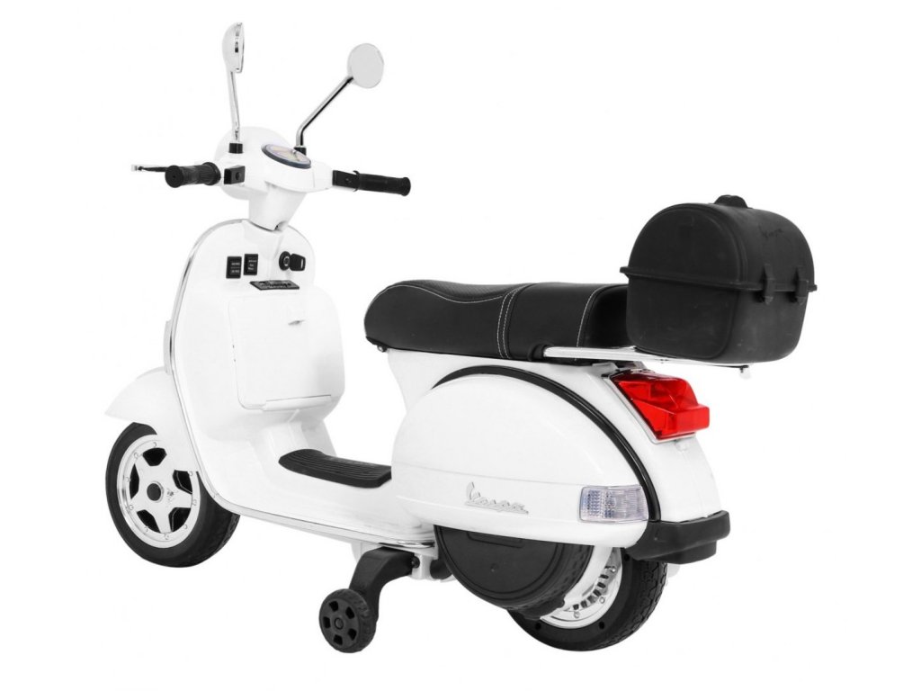 Vespa poate dura 1 oră de plimbare senzațională. Siguranța copilului este asigurată de roțile laterale și de frâna automată, care se oprește atunci când copilul ia piciorul de pe pedala de accelerație. Trotineta pentru copii este potrivita pentru copii de la 3 ani.