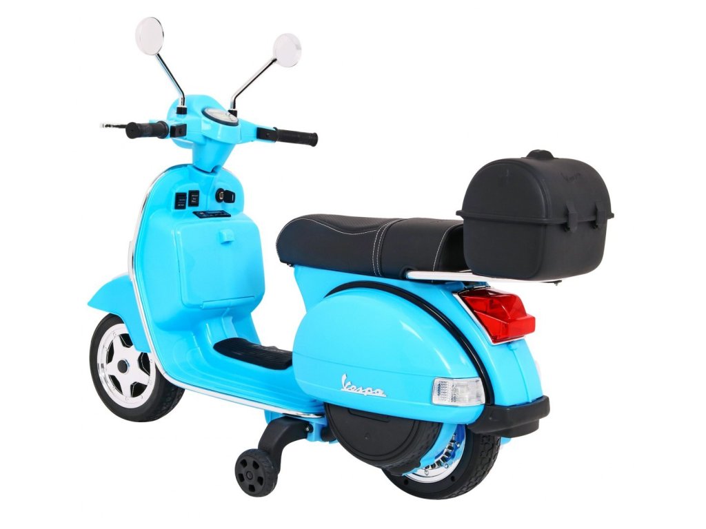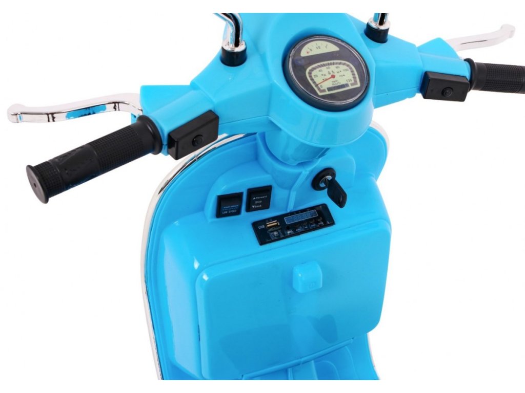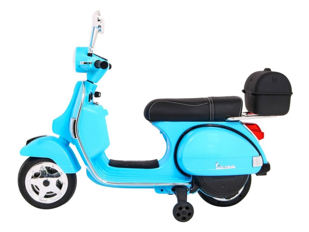 Cine nu cunoaste scuterul marca Vespa ? Chiar și copilul tău poate conduce acest scuter legendar, datorită acestui model licențiat. Trotineta are un scaun de înaltă calitate acoperit cu piele ecologică moale și roți moi din EVA. Pe lângă toate acestea, are lumini LED frumoase din față și din spate și poate reda fișiere MP3, astfel încât copilul să-și asculte melodia preferată în timp ce conduce și să-și îmbunătățească abilitățile de conducere în același timp.