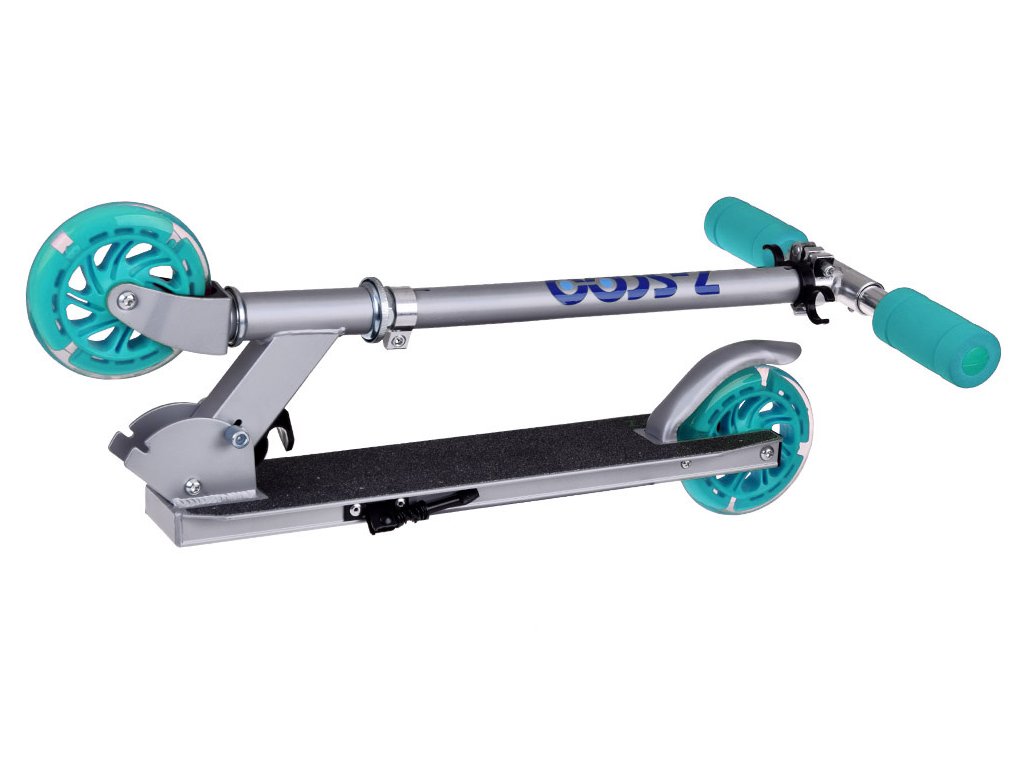 Trotineta pliabila pentru copii cu roti luminoase, turcoaz
