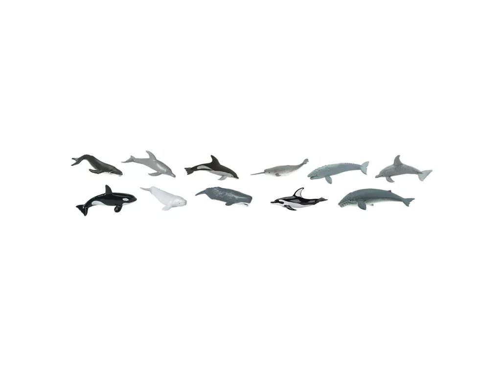 Tuba conține 11 modele de cetacee; versiunea originală includea și o figurină de scafandru. Figurinele pictate manual permit jocul „marea” — este suficient să adăugați un bol cu apă — și oferă un stimulent pentru discuții despre diferențele dintre cetacee și pești. Datorită execuției detaliate, copilul poate învăța numele speciilor și semnele lor tipice.