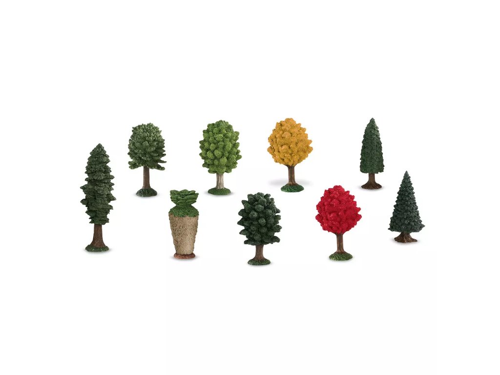 Setul include zece figurine de copaci, prelucrate realist, într-un tub, care reprezintă diferite tipuri de lemn. Figurinele sunt proiectate conform aspectului și culorilor reale și servesc drept instrument pentru recunoașterea arborilor și arbuștilor în grădini, livezi și parcuri.