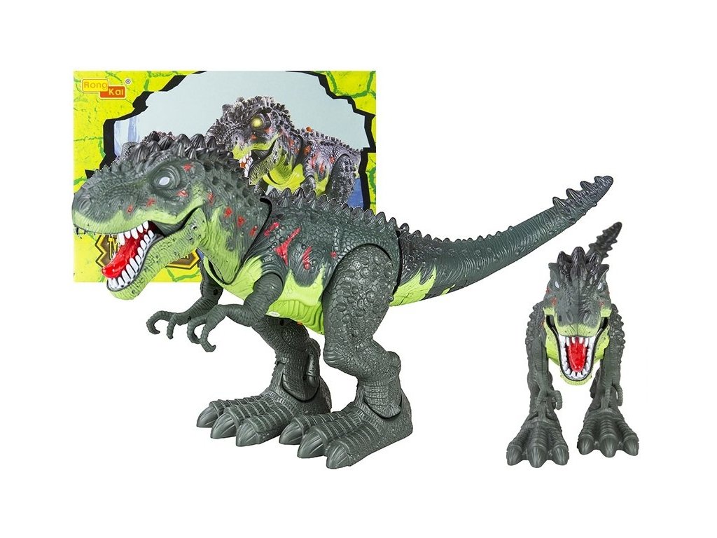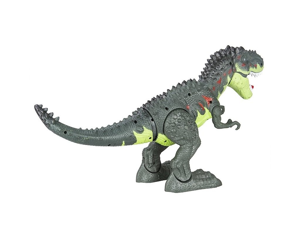 Dinozaurul Tyrannosaurus Rex este o mare imitație a dinozaurilor care au trăit cu milioane de ani în urmă. După apăsarea butonului, dinozaurul poate merge înainte și înapoi, însoțit de efecte luminoase și sonore. Totul este ambalat intr-o cutie, perfect ca un cadou.